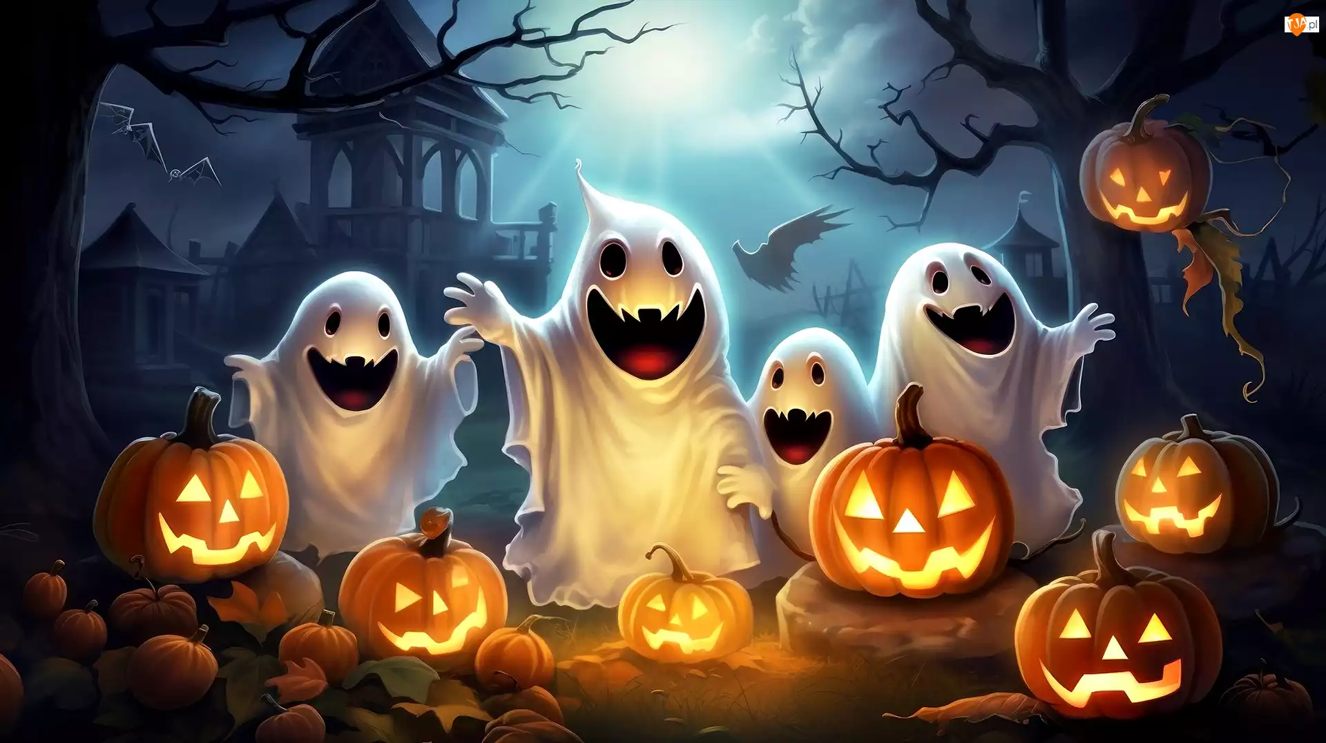 Dynie, Halloween, Duchy, Grafika, Wesołe, Noc