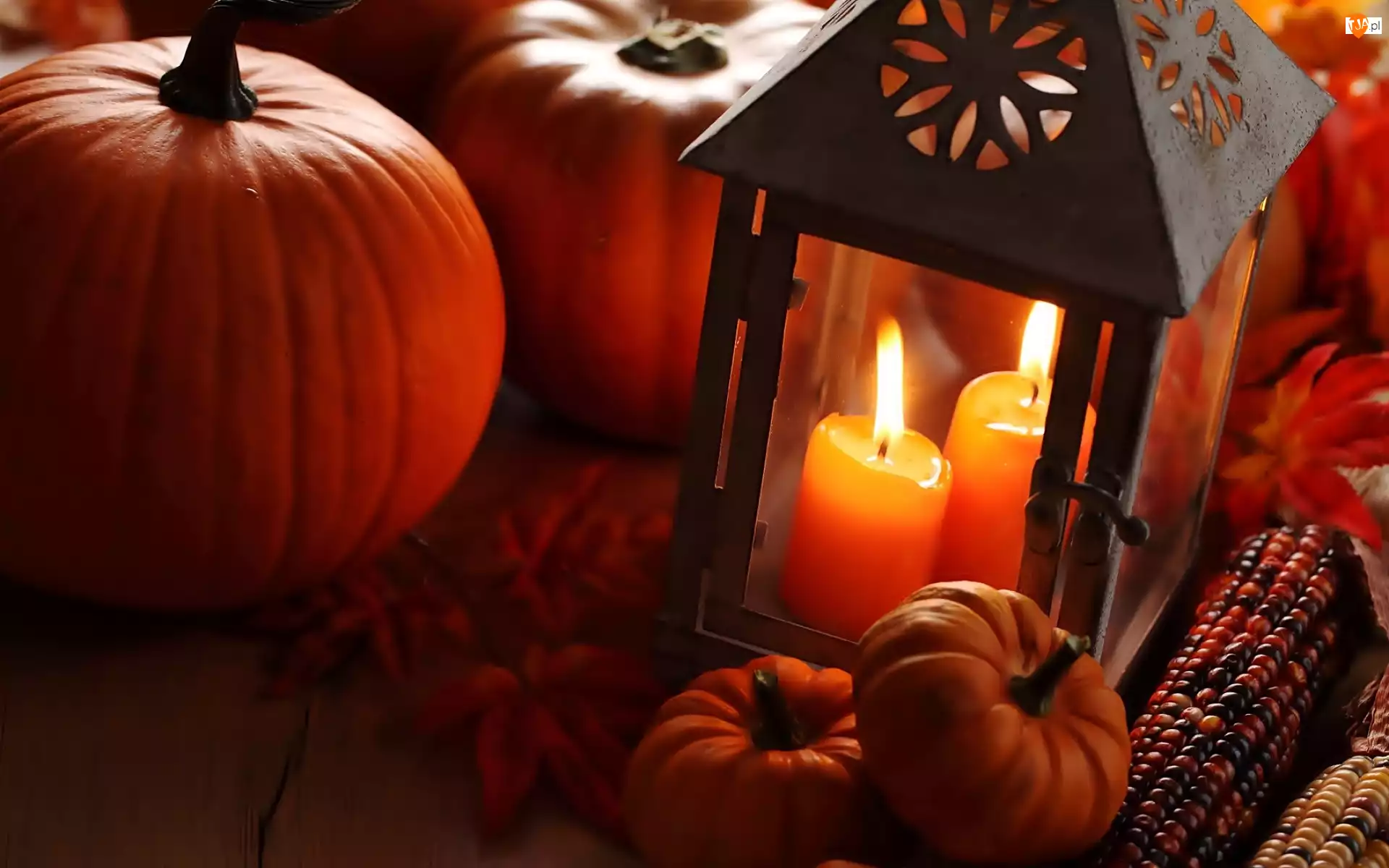 Dynie, Świece, Kukurydza, Lampion