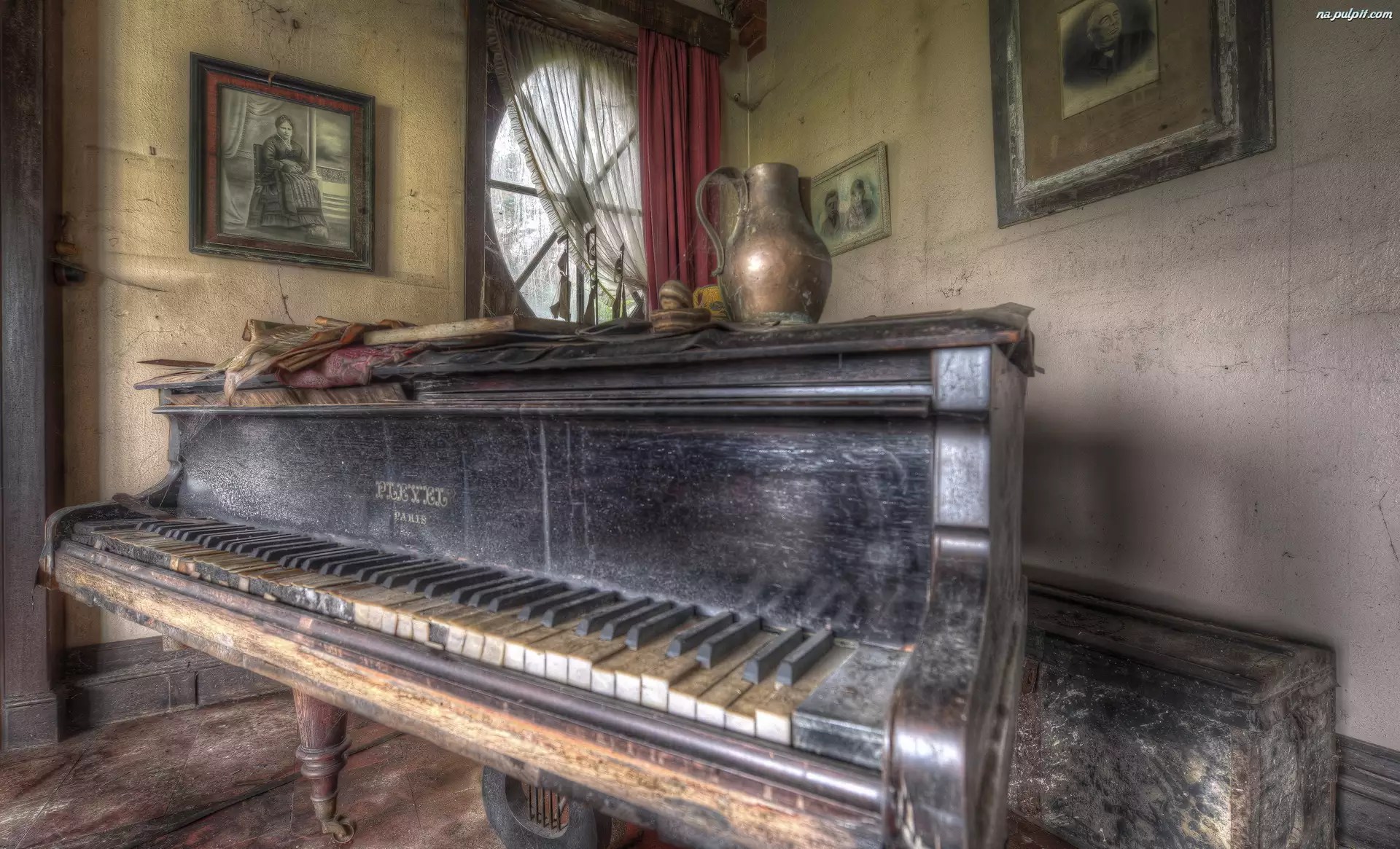 Pokój, Zaniedbany, Zdjęcia, HDR, Pianino, Dzban
