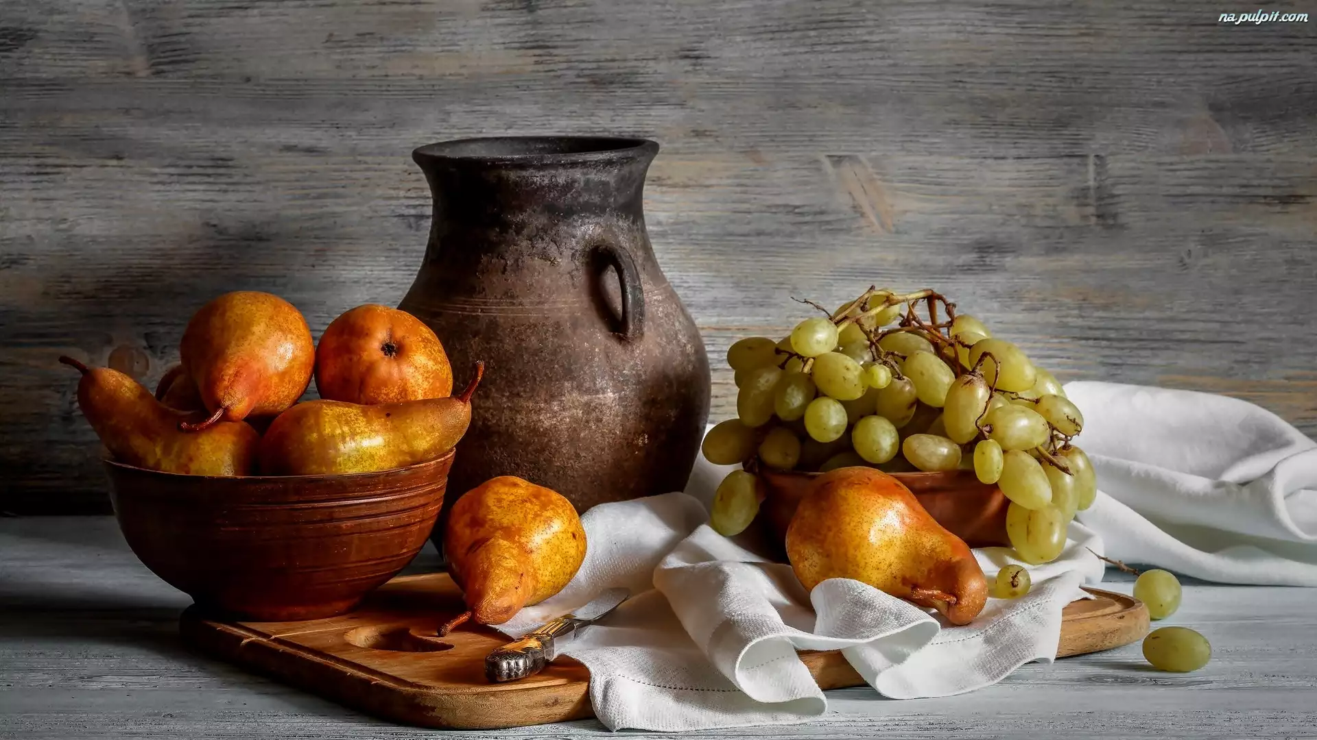Kompozycja, Winogrona, Dzbanek, Gruszki