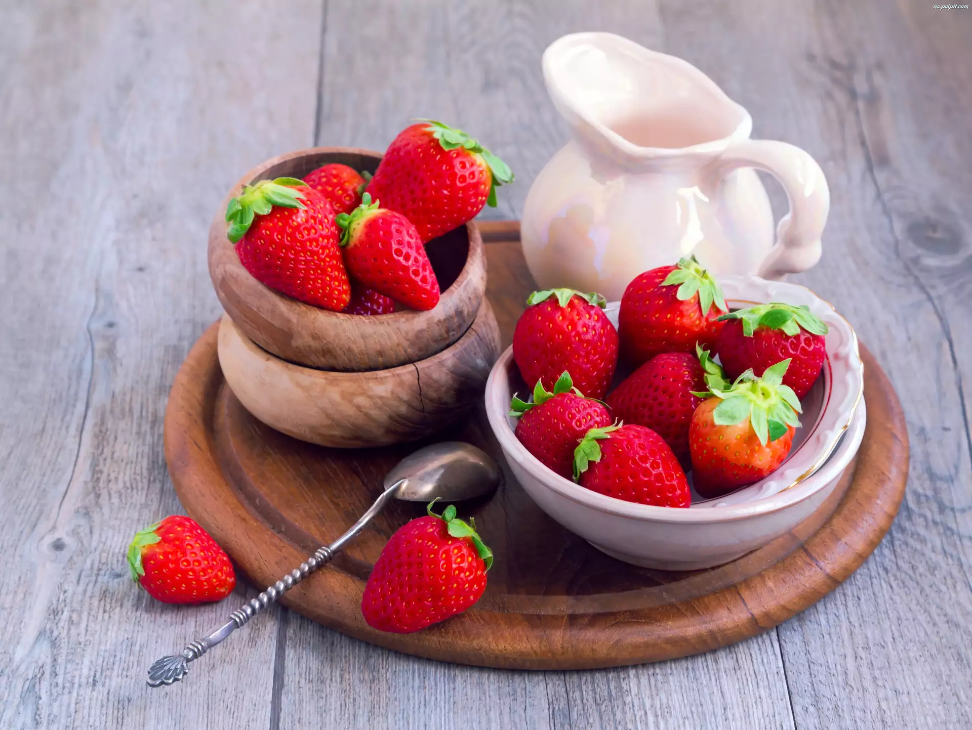 Deska, Truskawki, Miseczki, Dzbanuszek