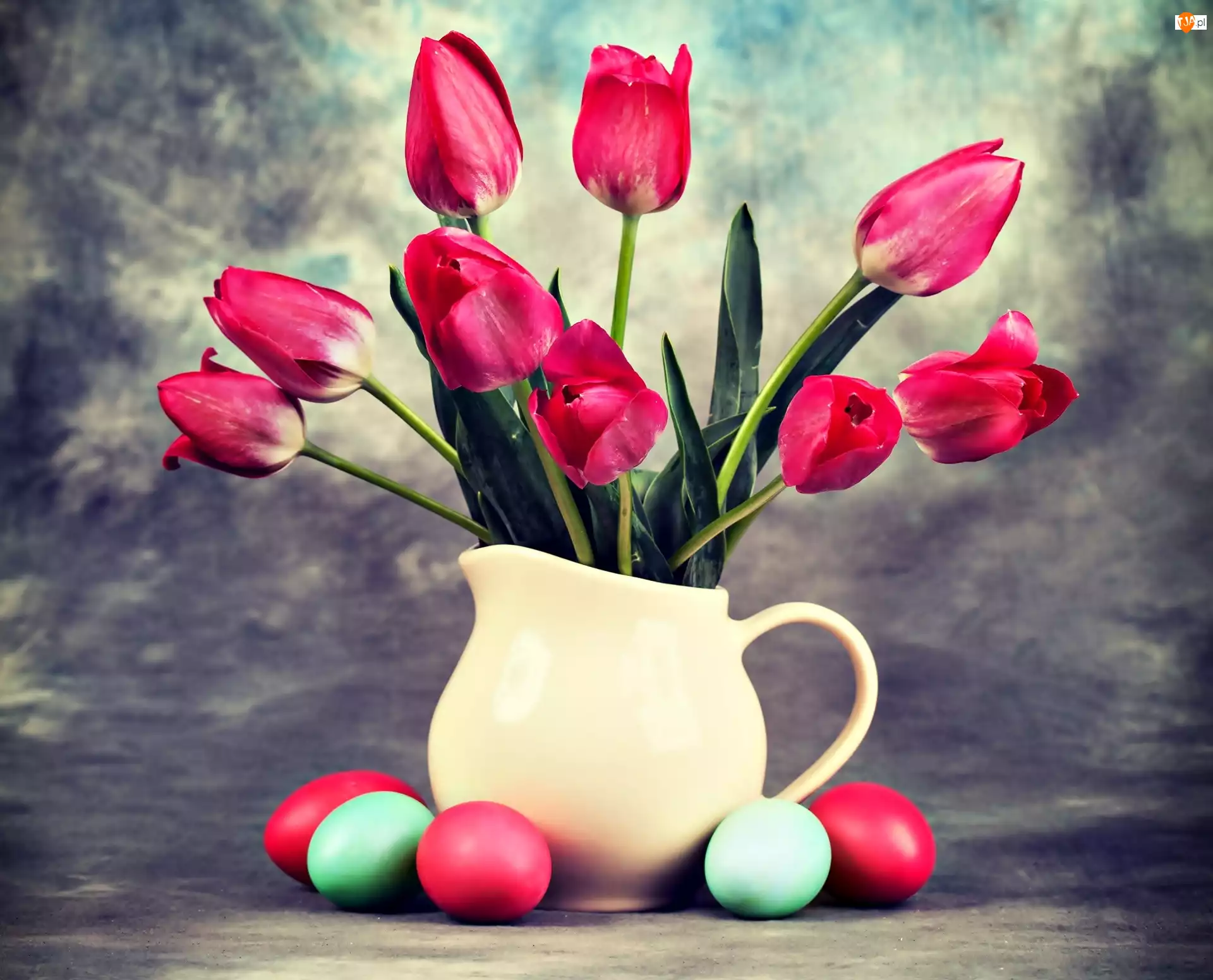Dzbanek, Wielkanoc, Bukiet, Pisanki, Tulipany