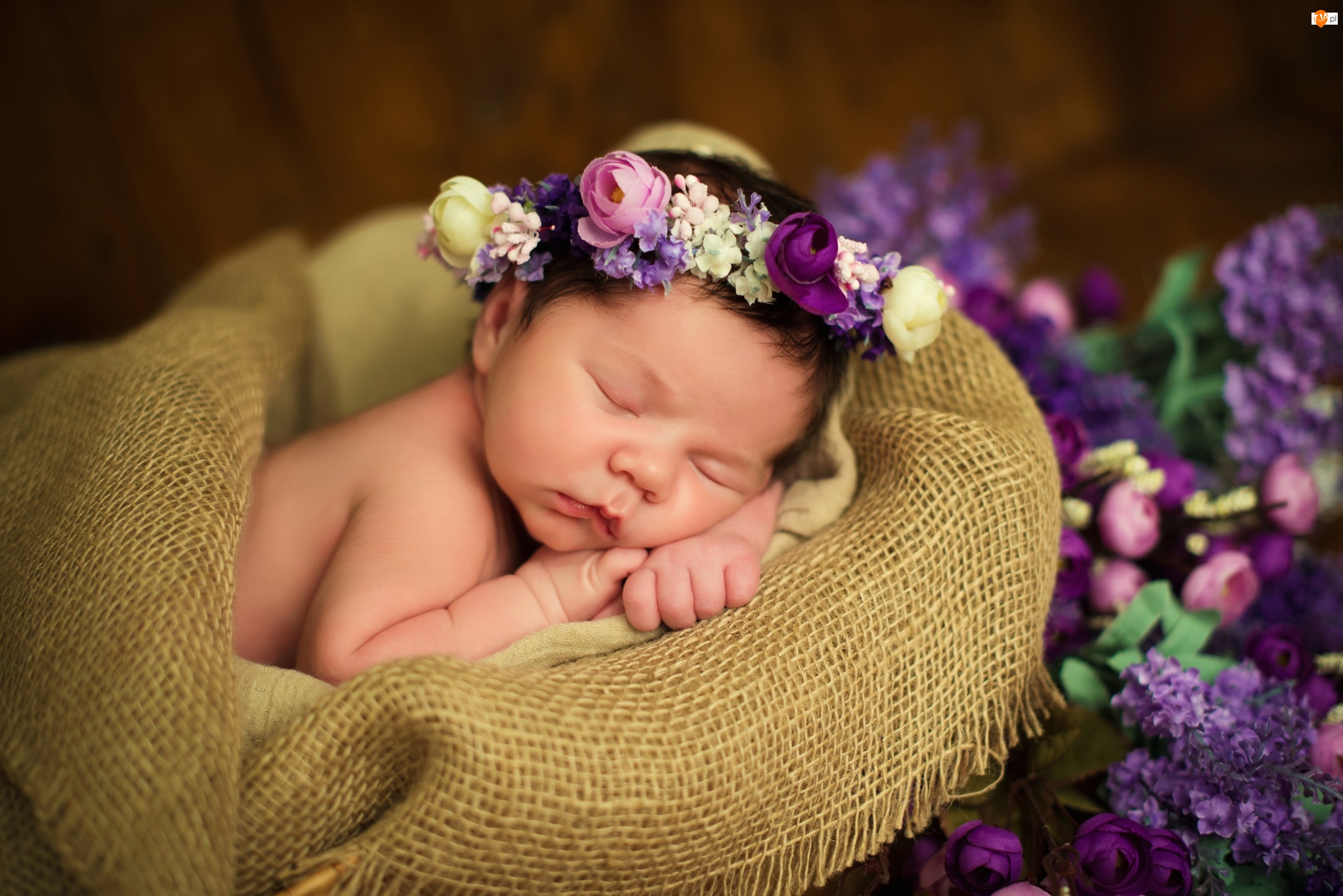 Dziecko, Kwiaty, Niemowlę, Wianek