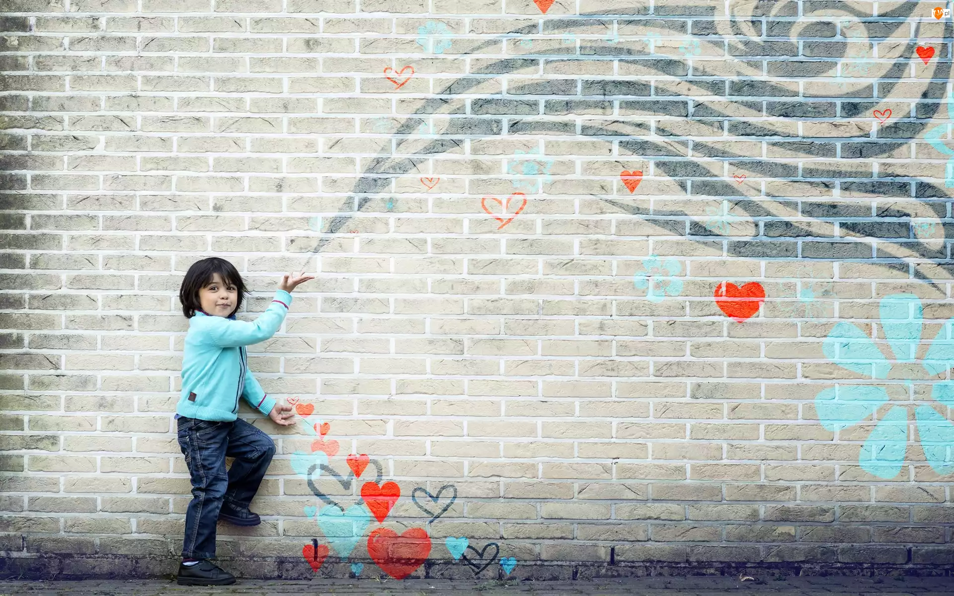 Dziecko, Serca, Rysunek, Mur