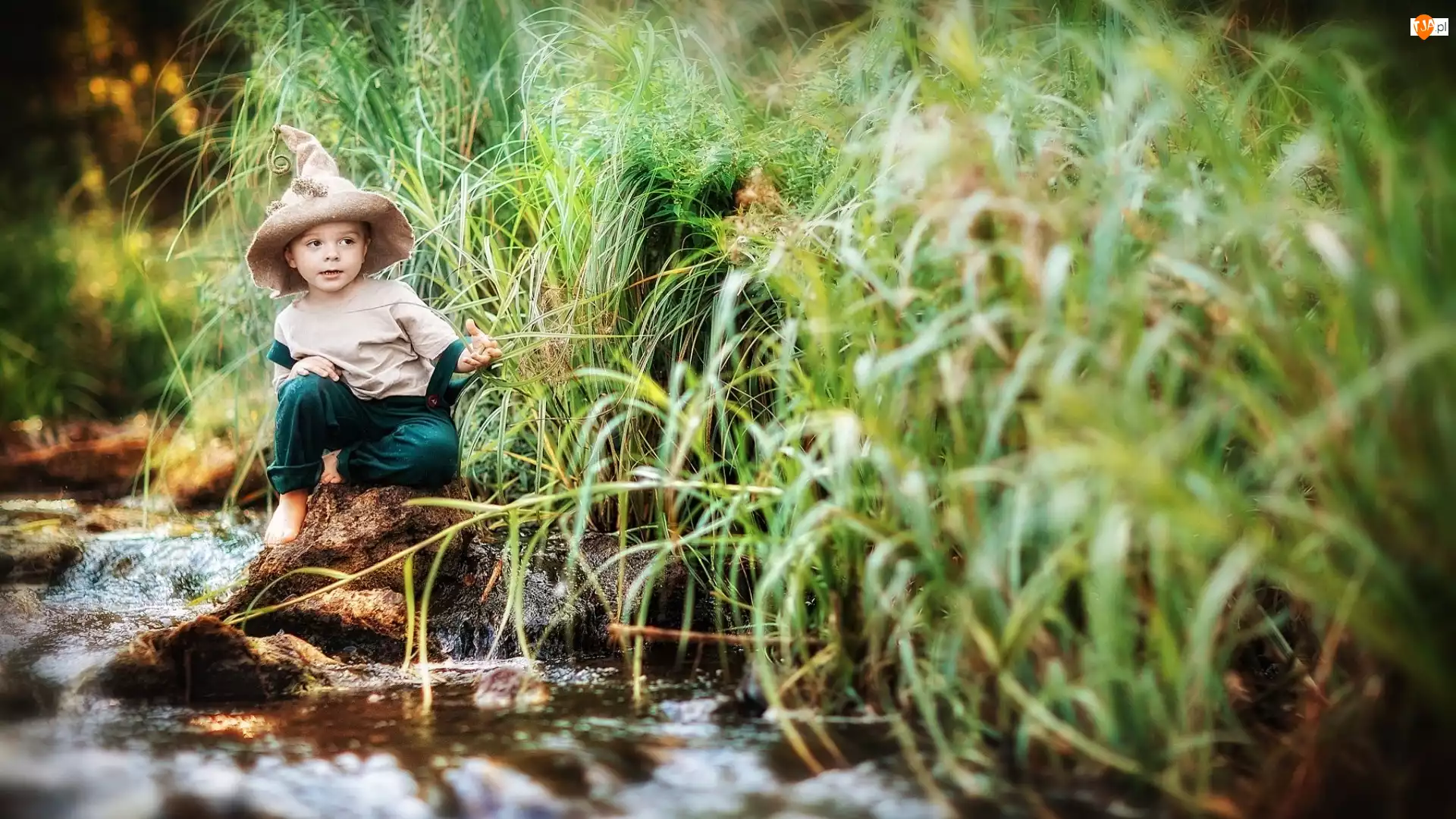 Dziecko, Trawy, Skrzat, Rzeka