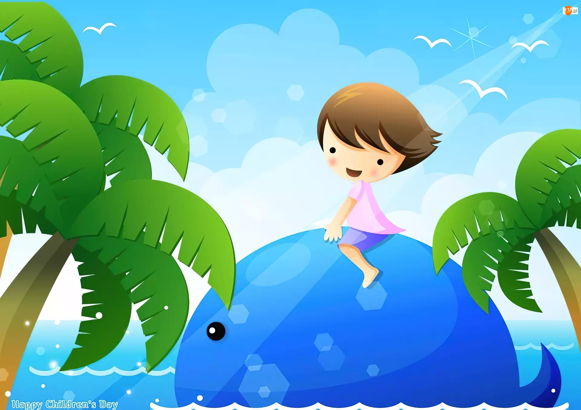 Dziecko, Wieloryb, Morze, Palmy