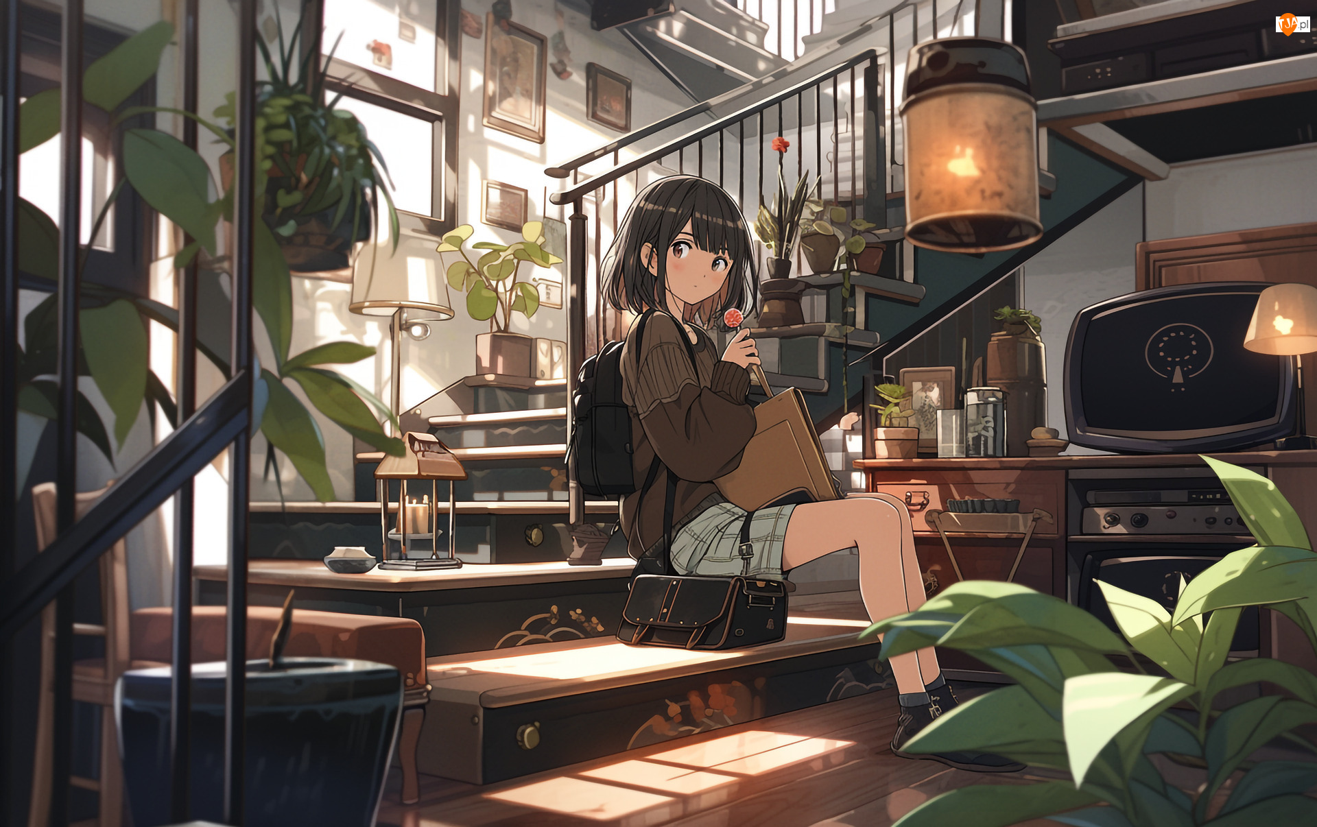 Anime, Dziewczyna, Schody, Pokój