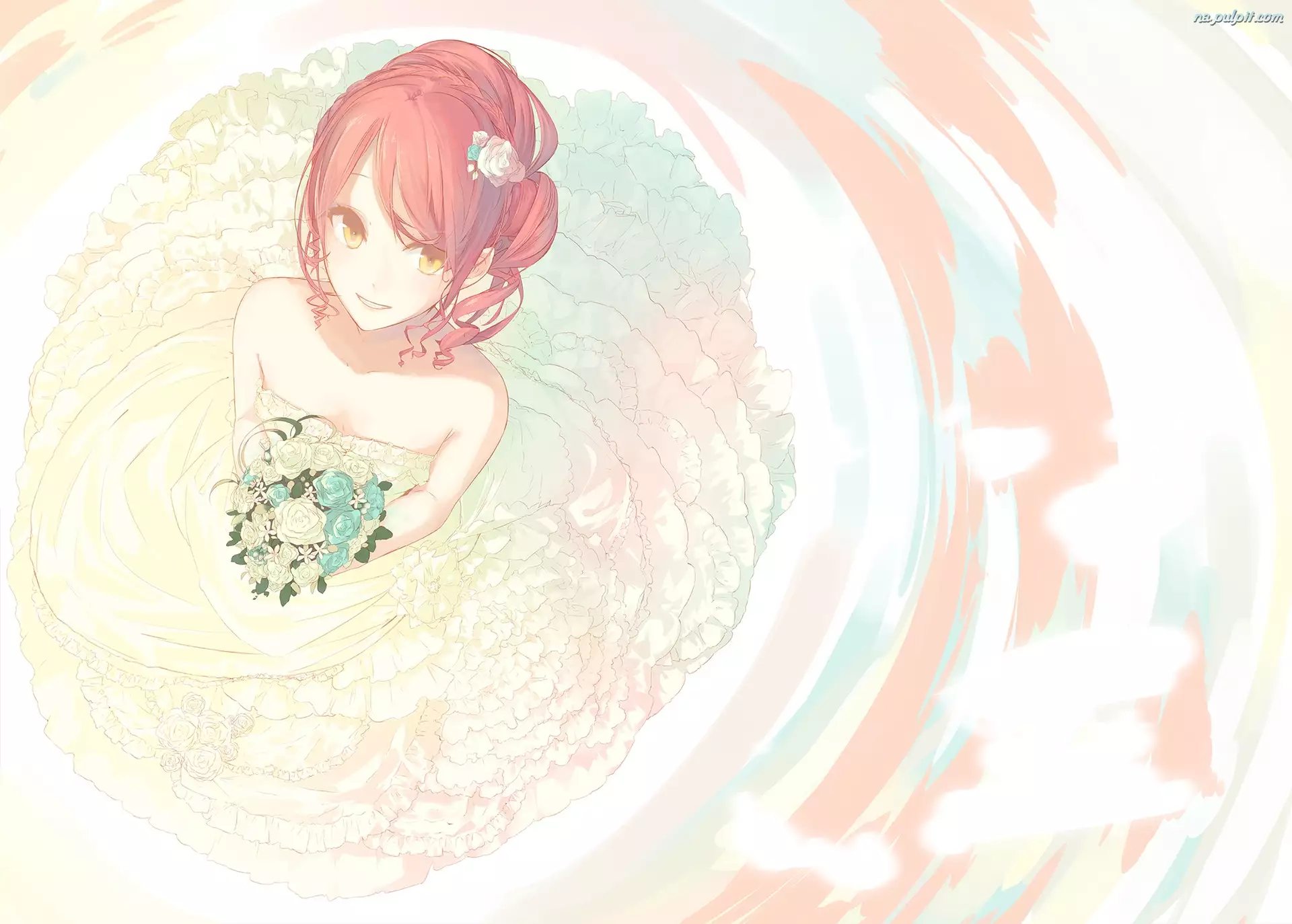 Dziewczyna, Anime, Suknia, Kwiaty