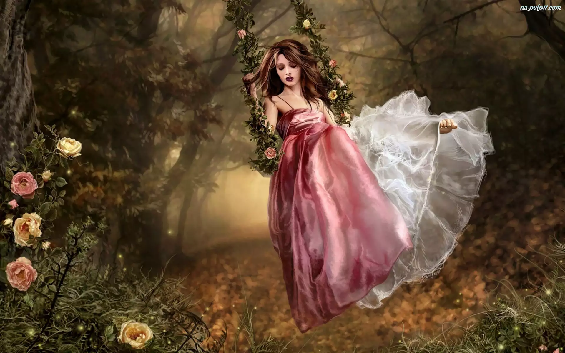 Dziewczyna, Huśtawka, Suknia, Balowa
