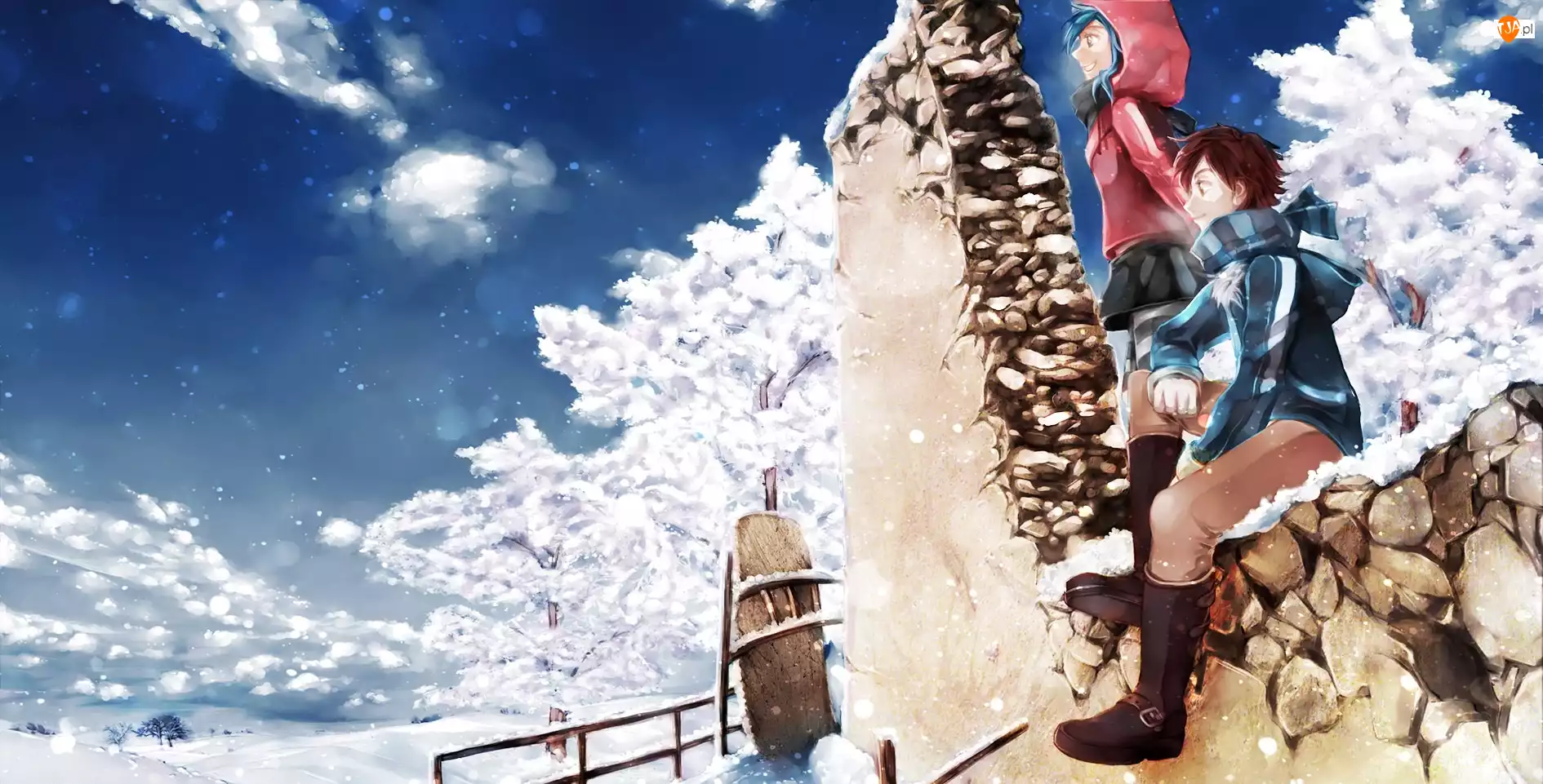 Dziewczyna, Manga Anime, Chłopak, Śnieg