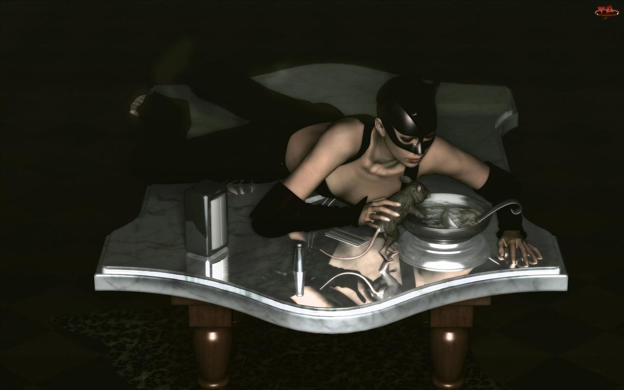 Dziewczyna, Szczur, Kot, Stół