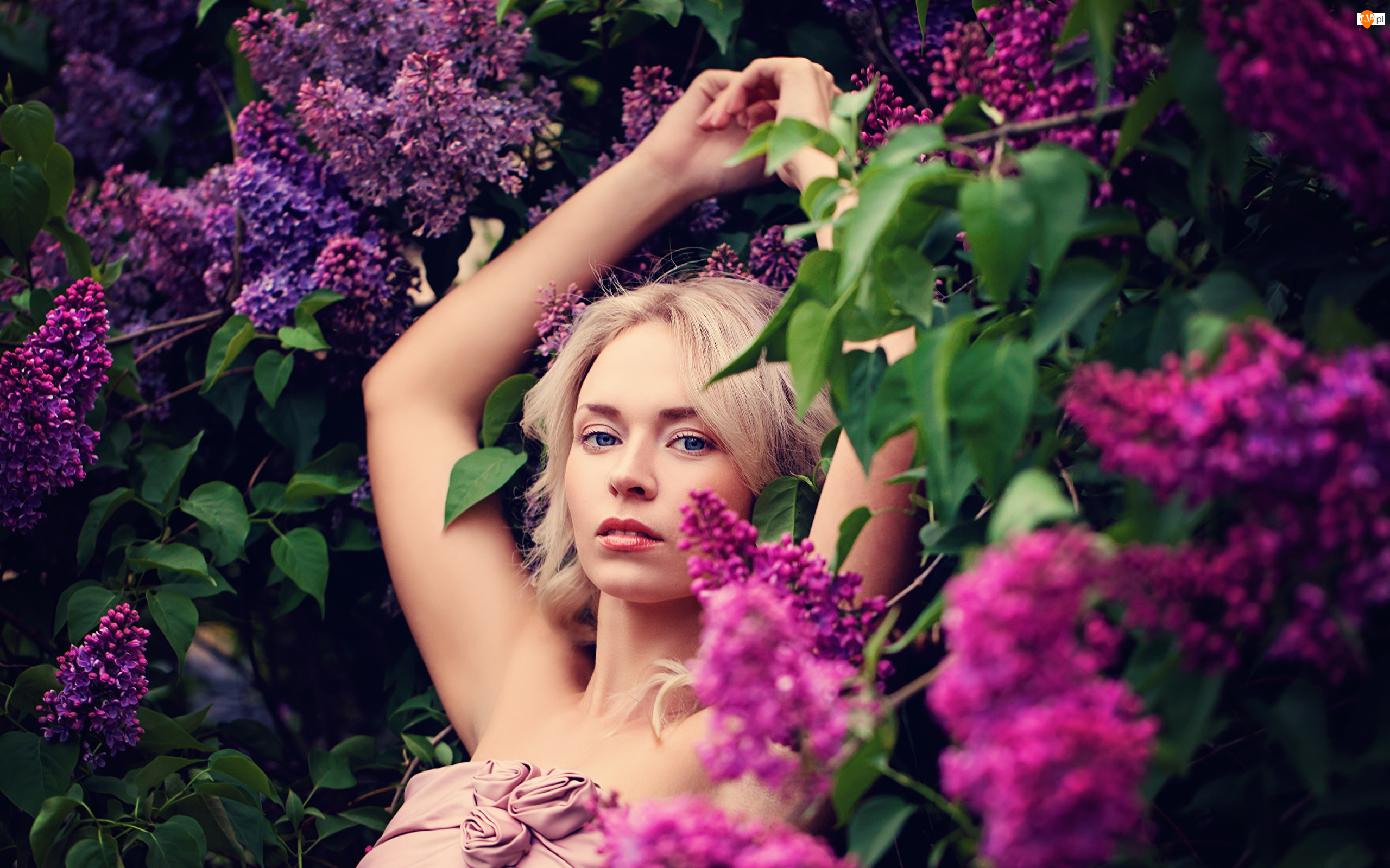 Blondynka, Kwiaty, Bez, Dziewczyna