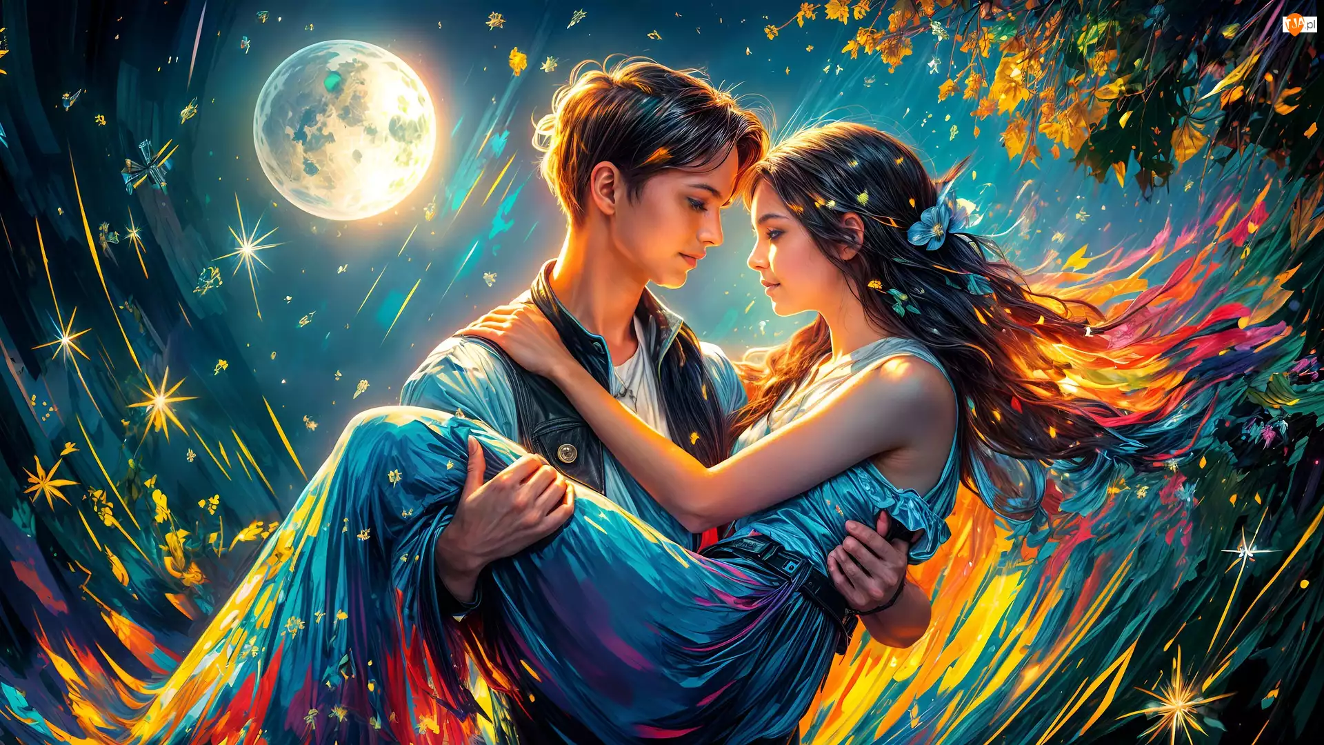 Dziewczyna z chłopakiem w blasku księżyca