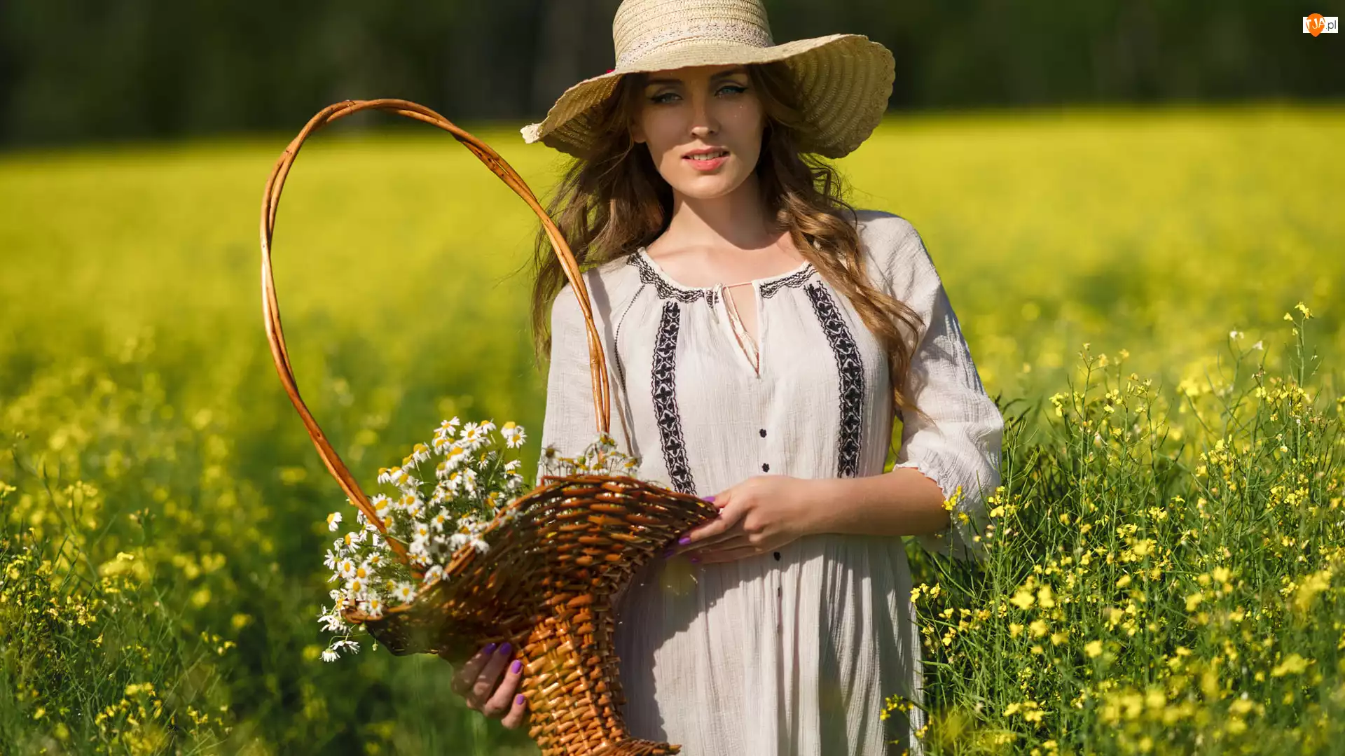 Rumianki, Dziewczyna, Kapelusz, Koszyk