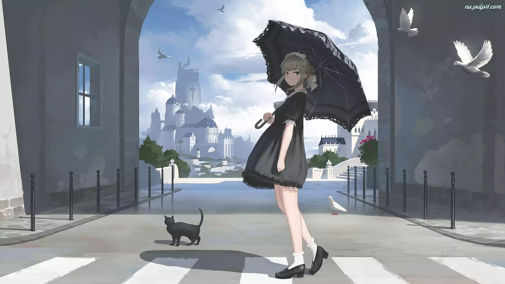 Parasolka, Ulica, Dziewczyna, Manga Anime, Kot