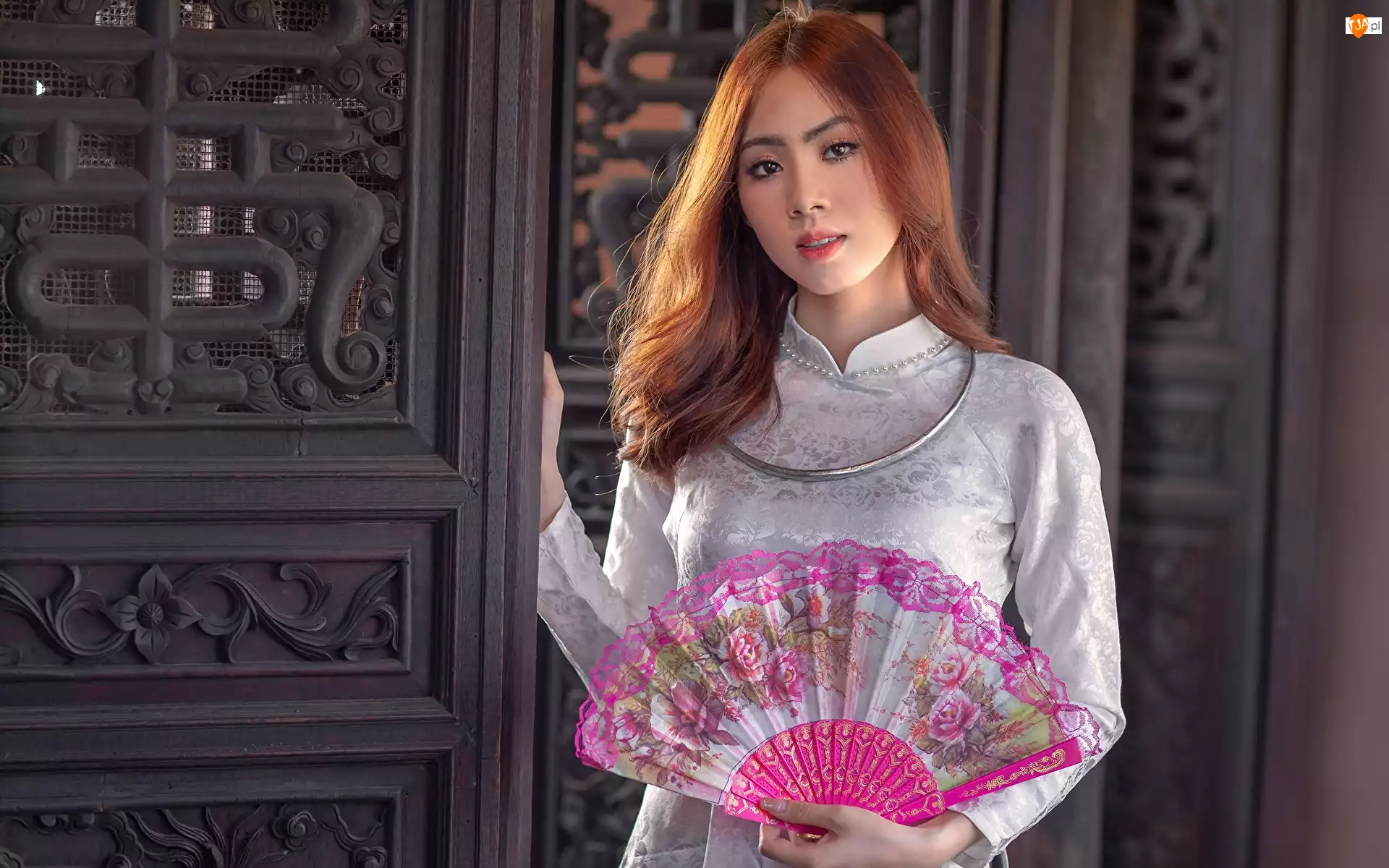 Włosy, Wachlarz, Długie, Dziewczyna, Różowy