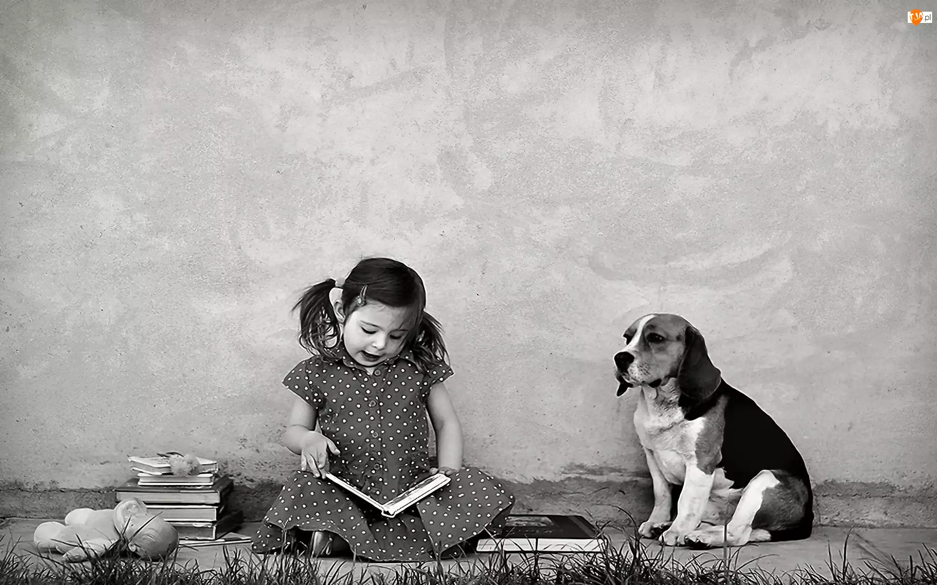 Dziewczynka, Beagle, Książki, Pies