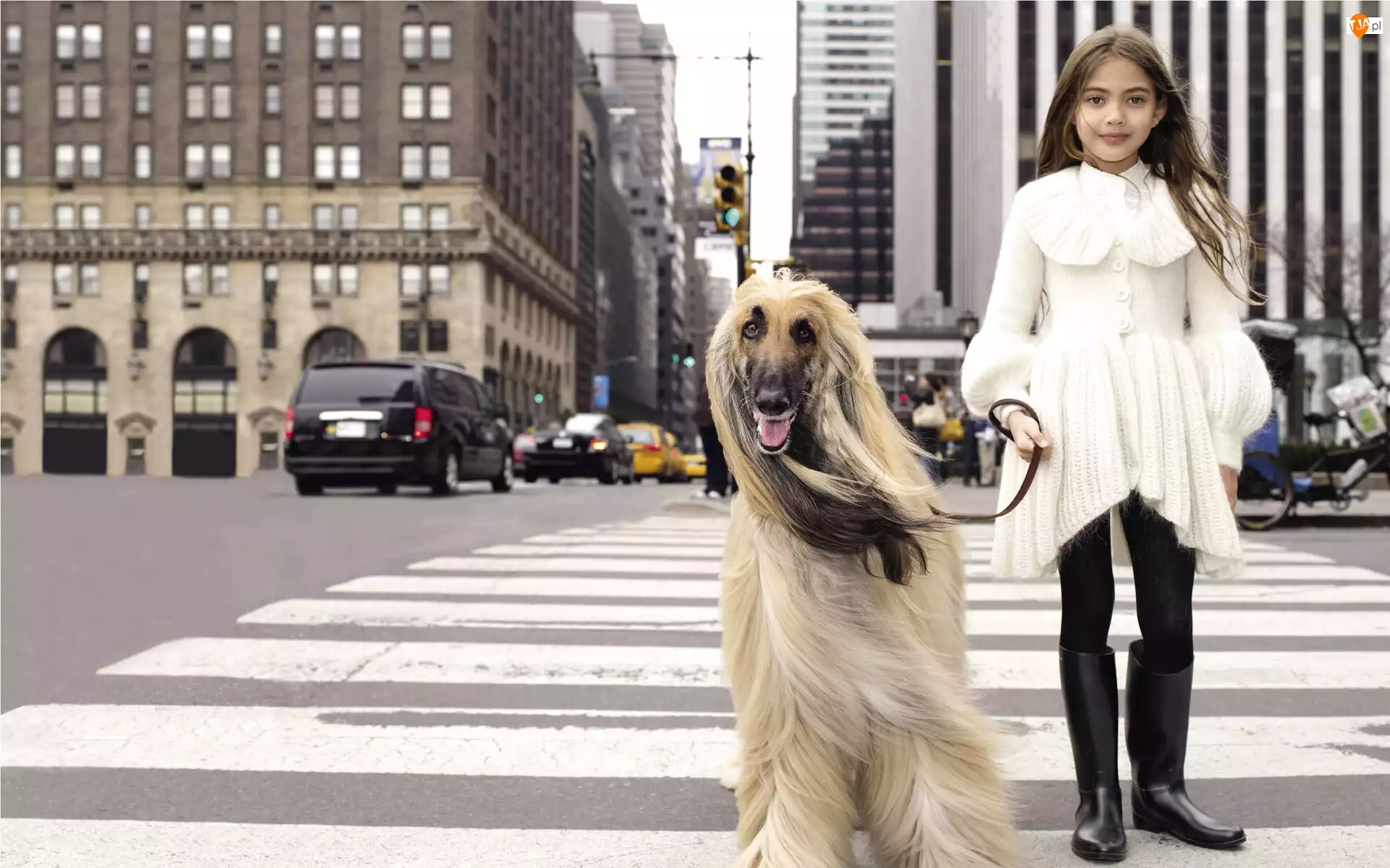 Dziewczynka, Chart afgański, Ulica, Nowy Jork