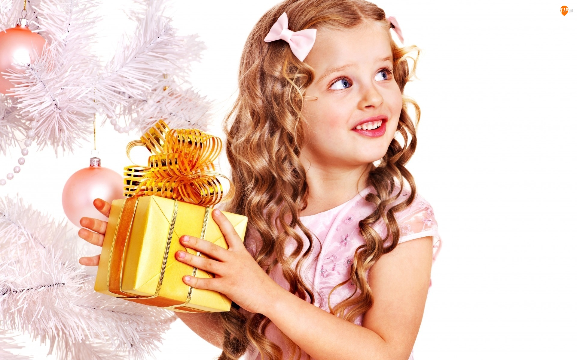 Dziewczynka, Choinka, Świąteczny, Prezent