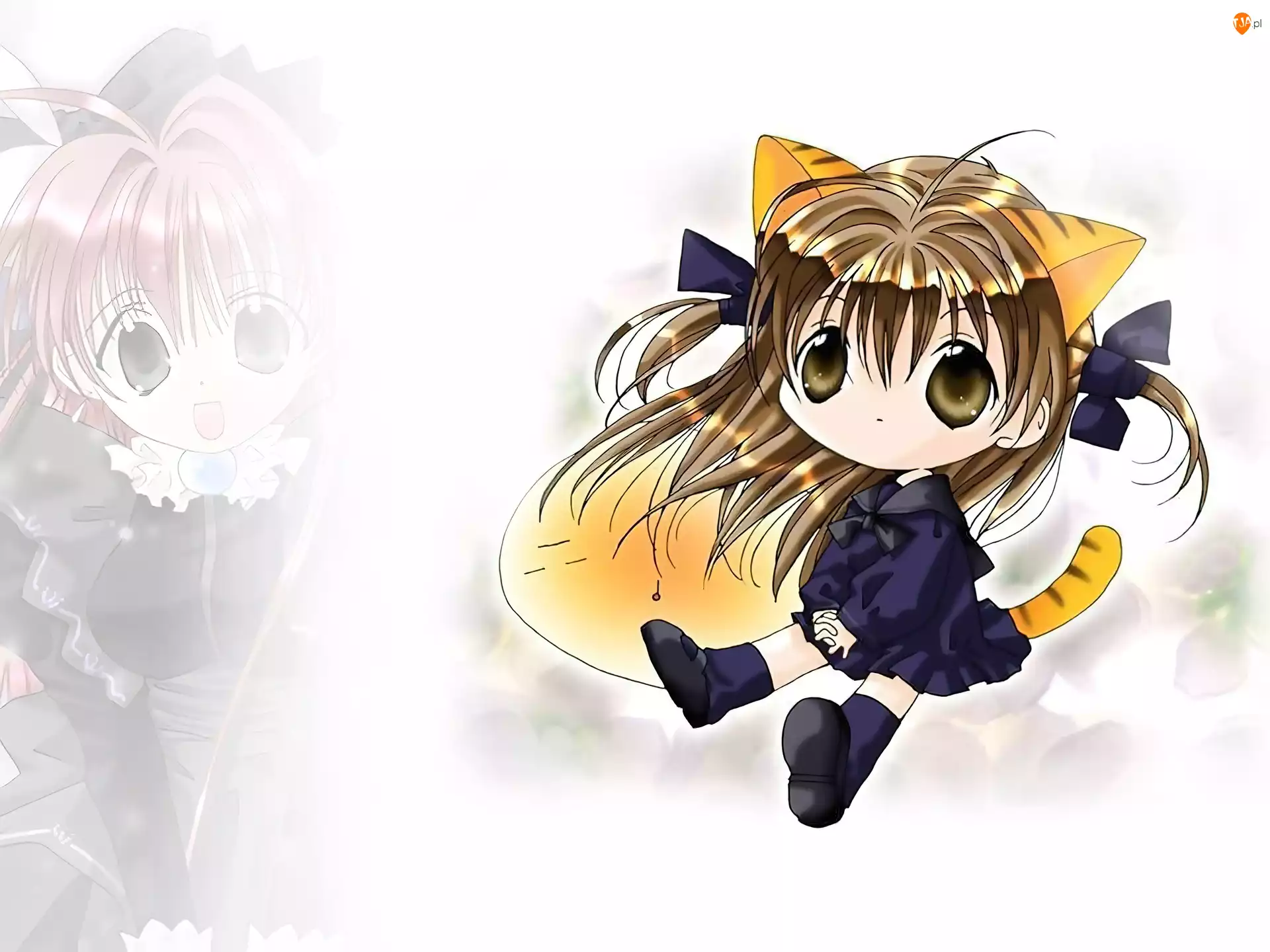 dziewczynka, Digi Charat, kot, kokarda, mgła