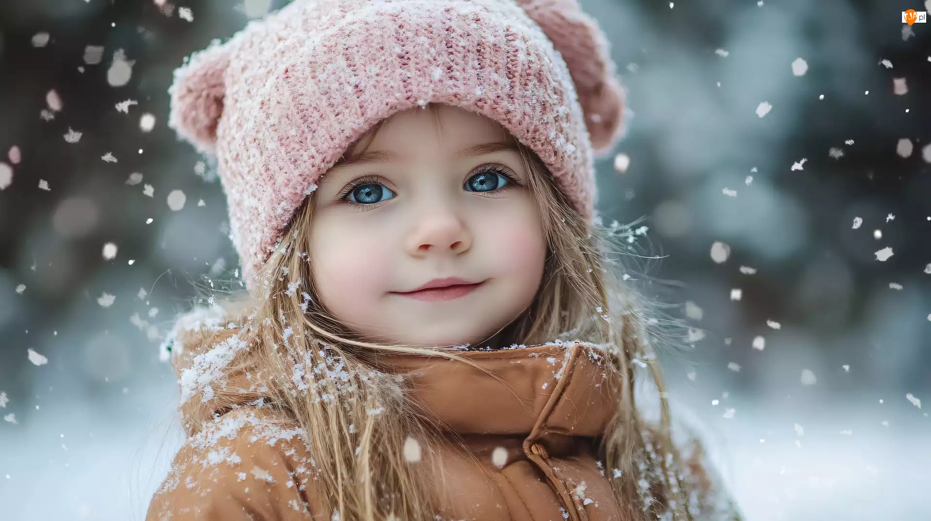 Dziewczynka, Długowłosa, Kurtka, Dziecko, Czapka, Ośnieżona, Blondynka