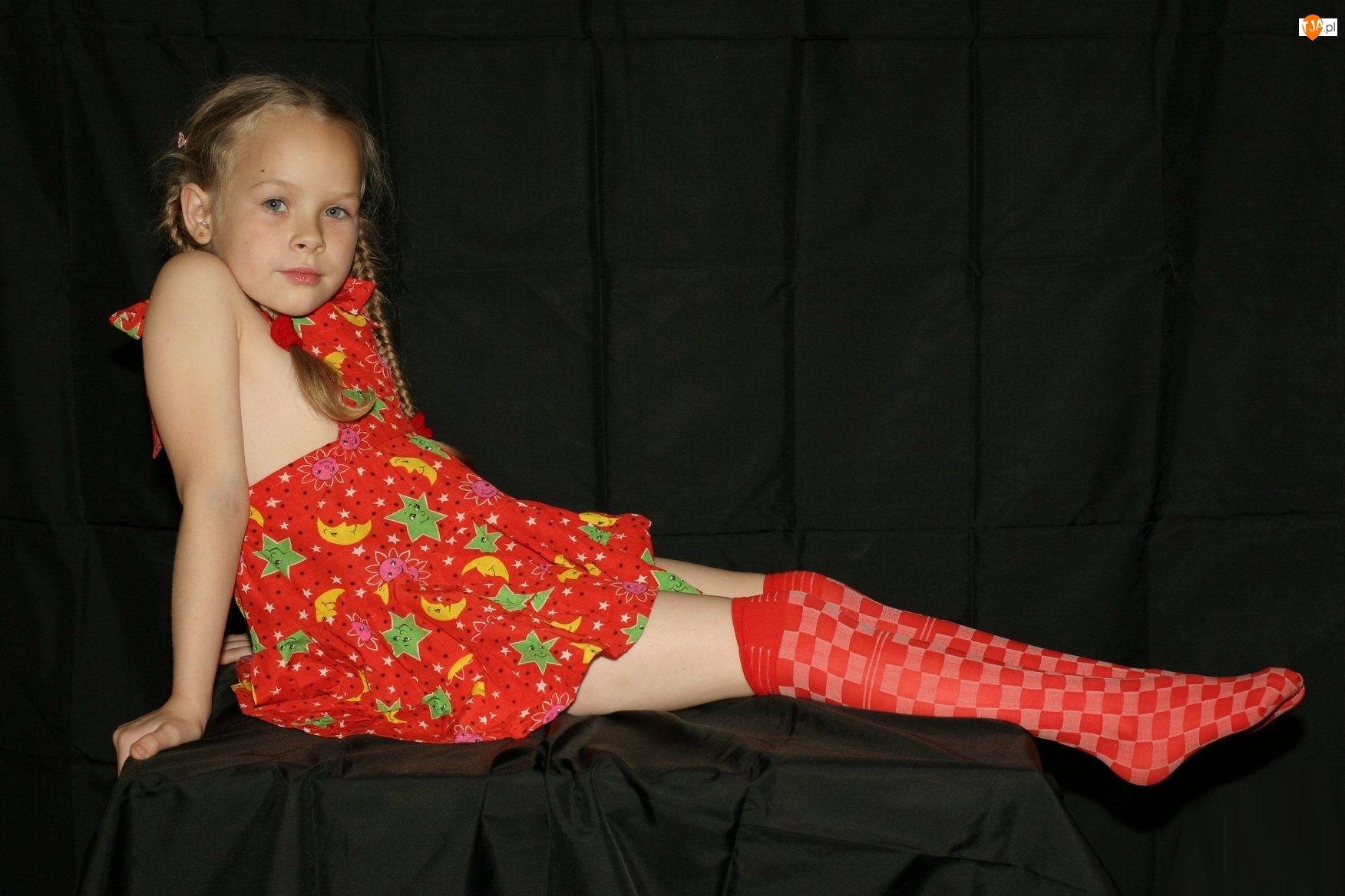 Dziewczynka, Strój, Warkocze, Czerwony