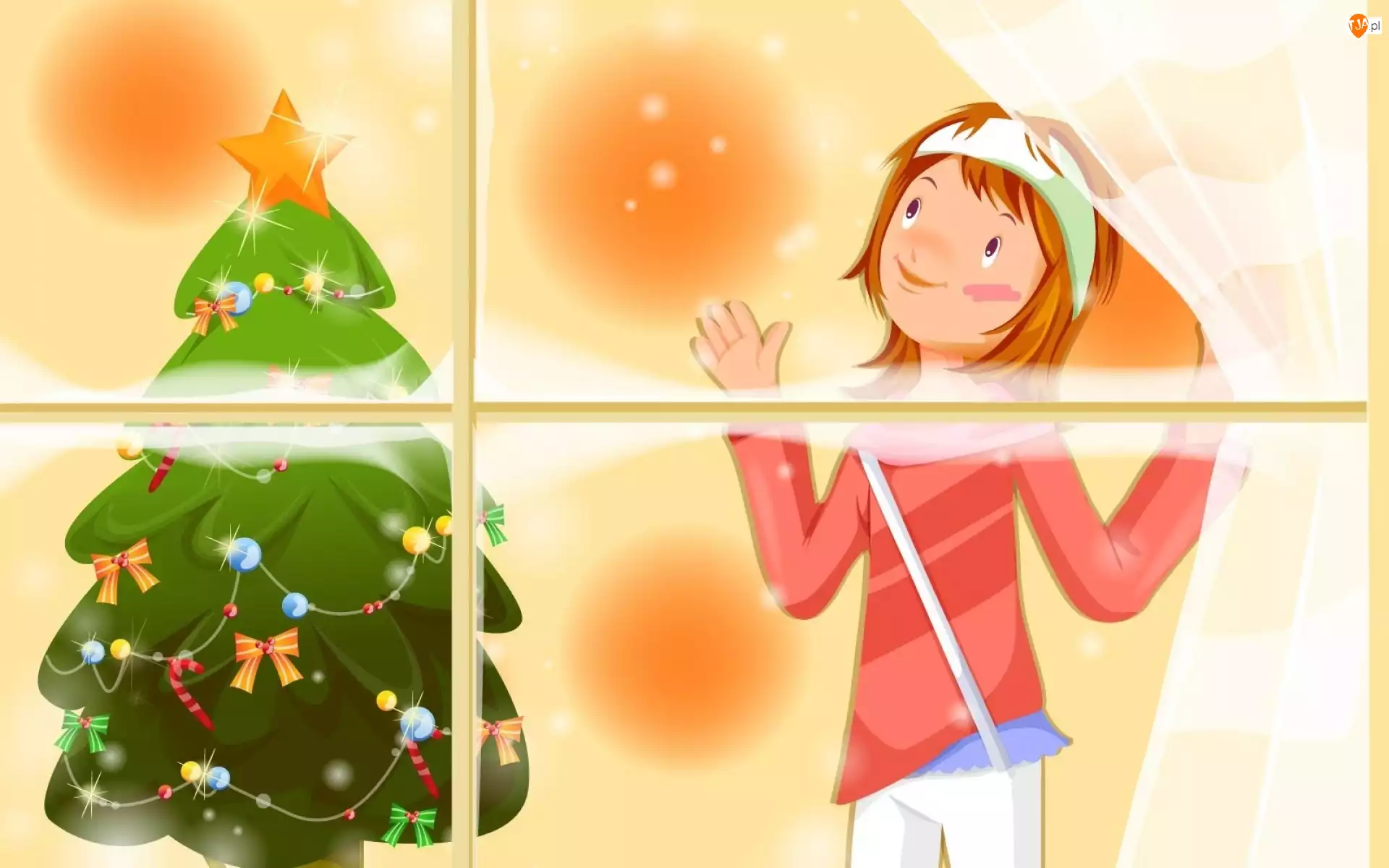 Dziewczynka, Święta, Choinka, Wyczekiwanie