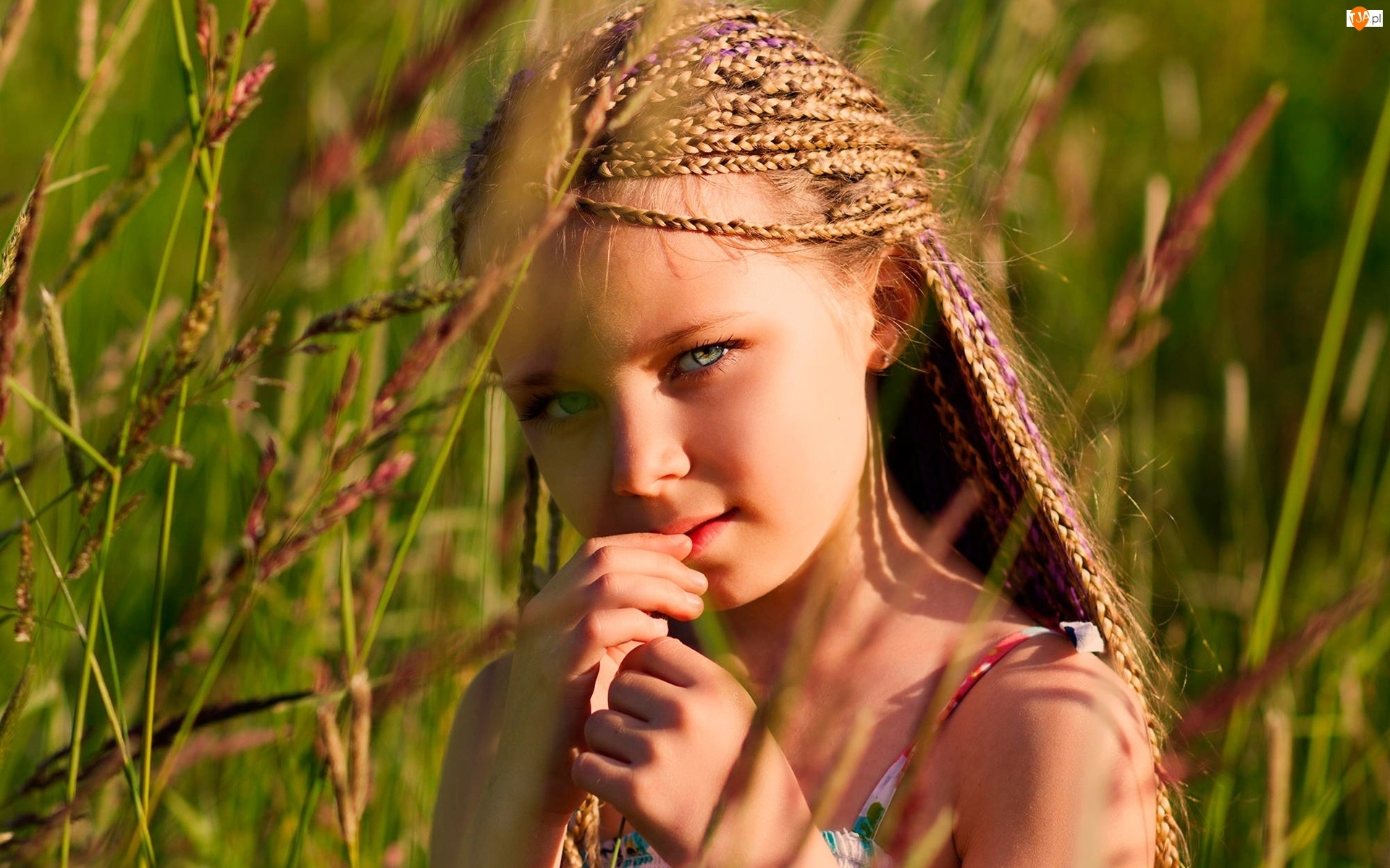 Trawa, Dziewczynka, Twarz, Warkoczyki