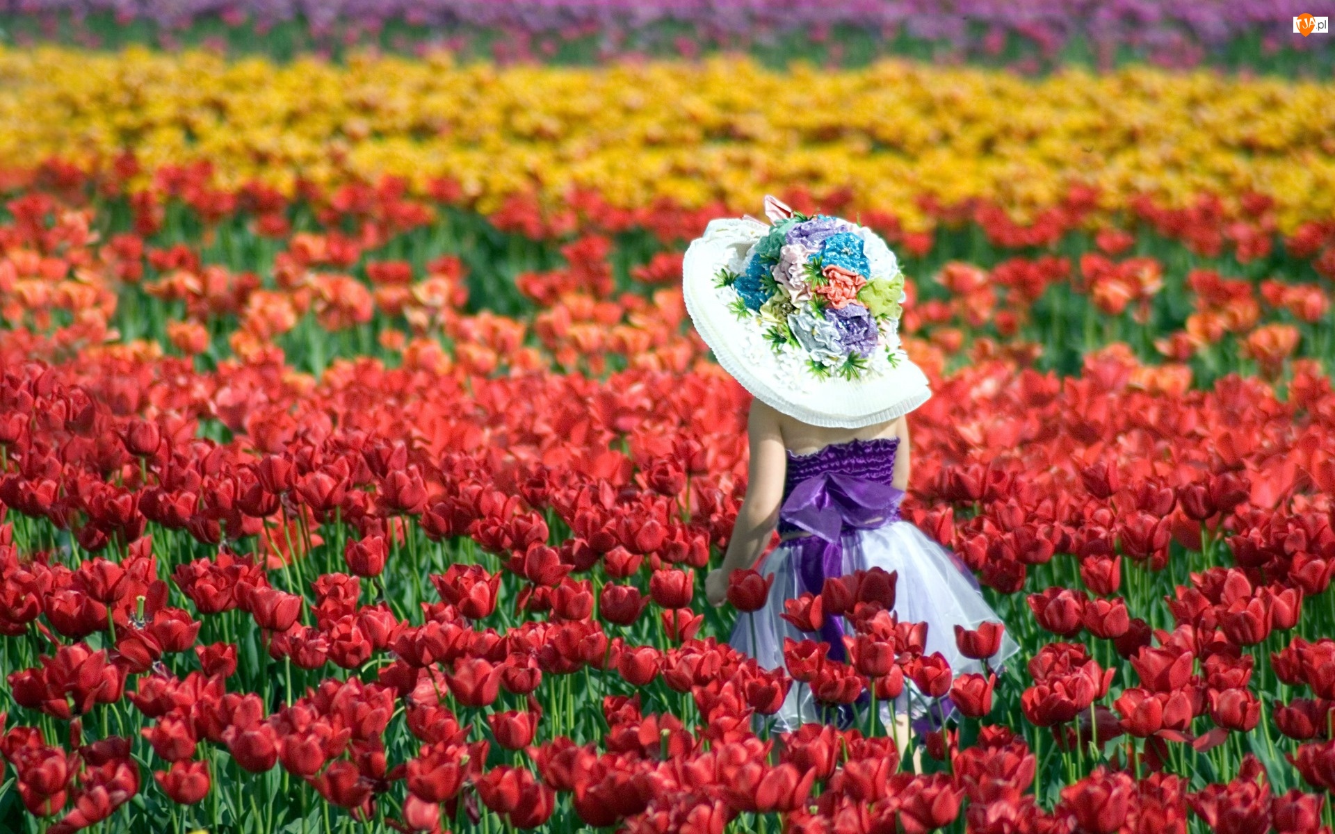 Dziewczynka, Tulipanów, Kapelusik, Pole