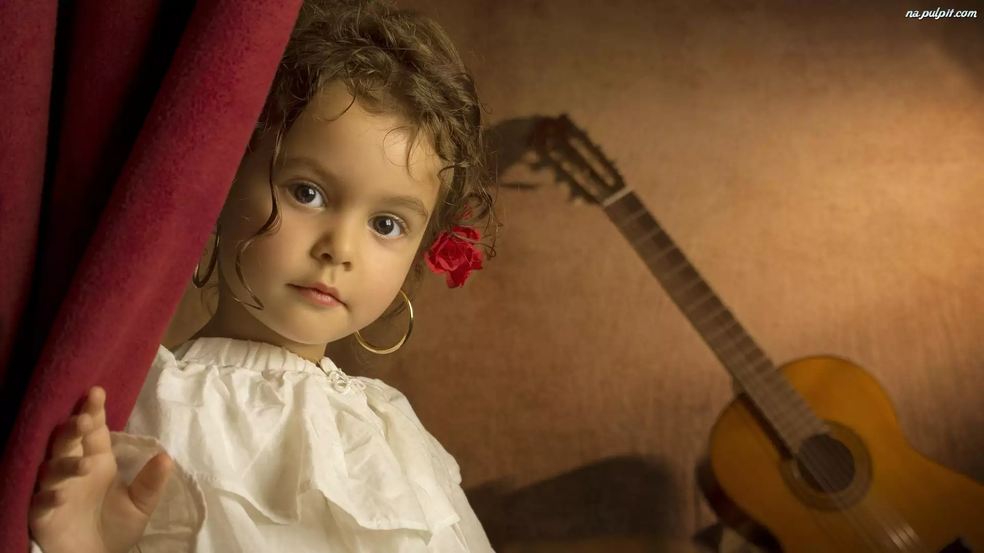 Róża, Gitara, Dziewczynka, Kotara, Kolczyki