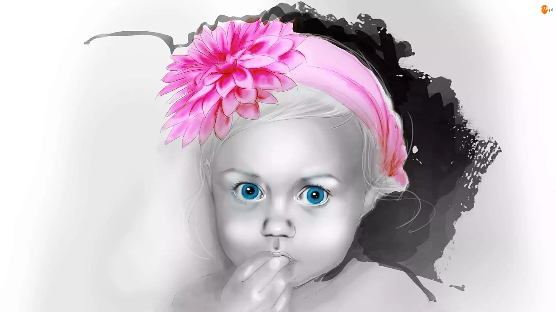 Dziewczynka, Paintography, Oczy, Opaska, Niebieskie, Różowa