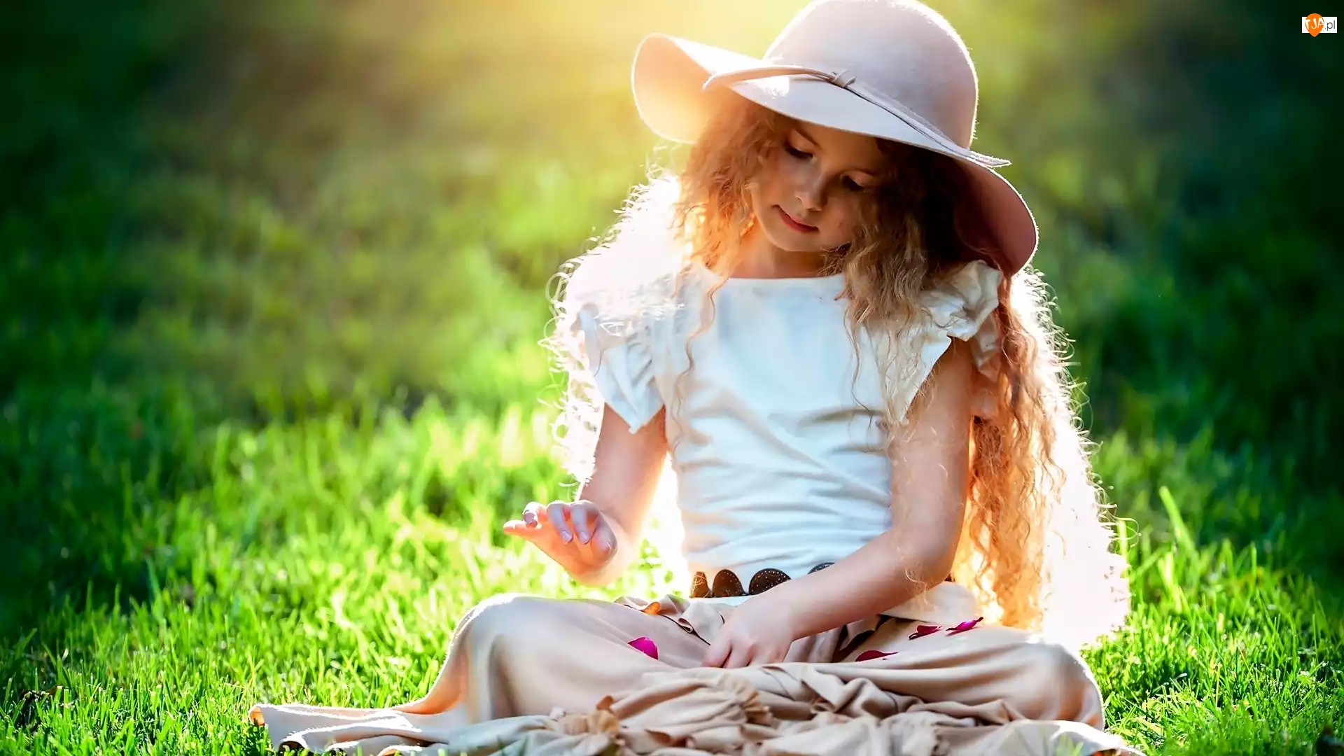 Dziewczynka, Włosy, Kapelusz, Kręcone