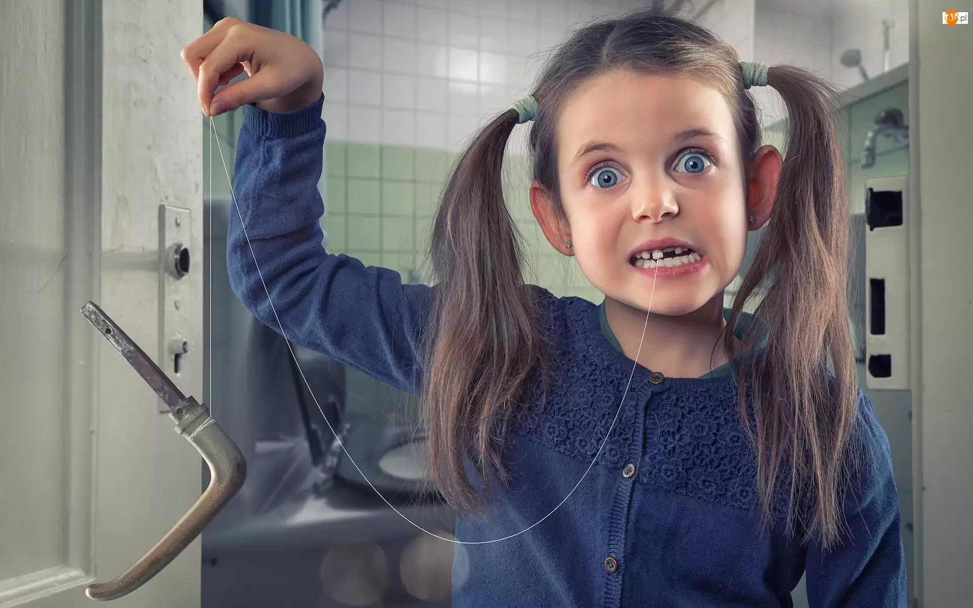 Klamka, Nitka, Dziewczynka, Śmieszne, Ząb