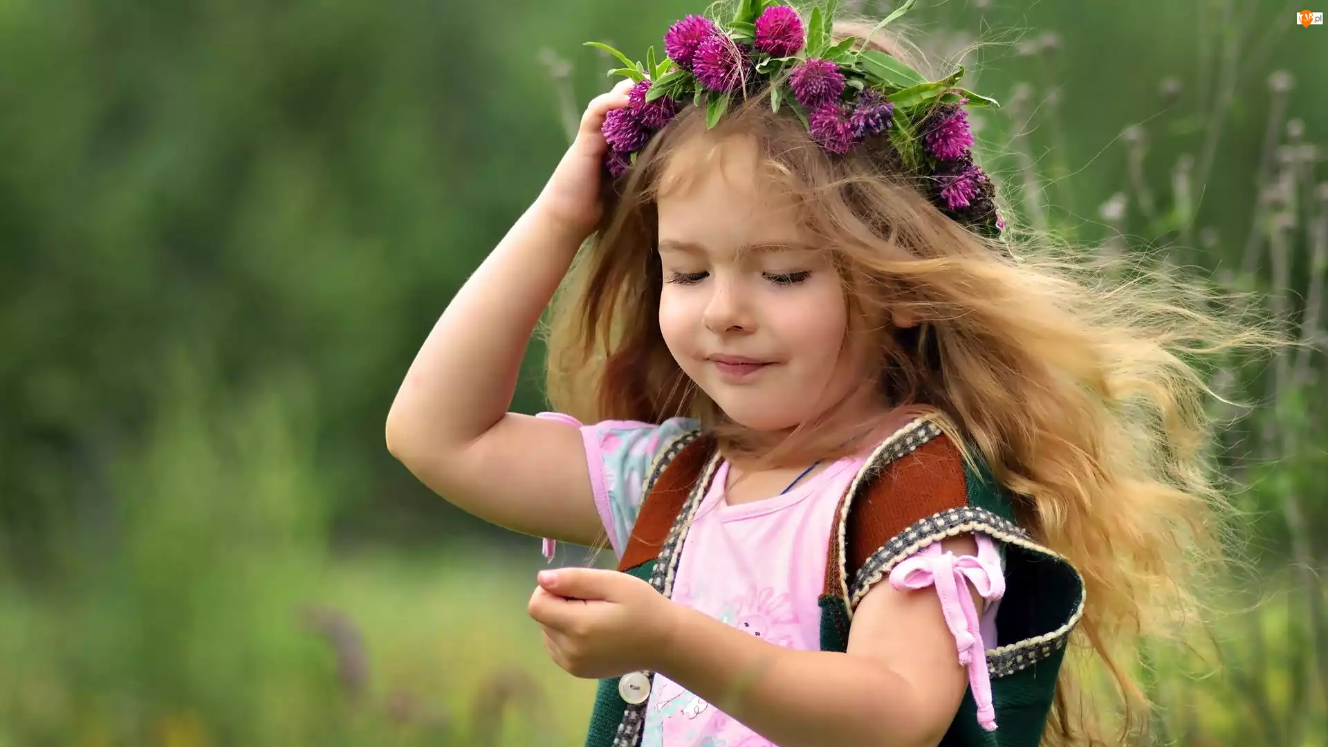 Dziewczynka, Z Koniczyny, Łąka, Wianek
