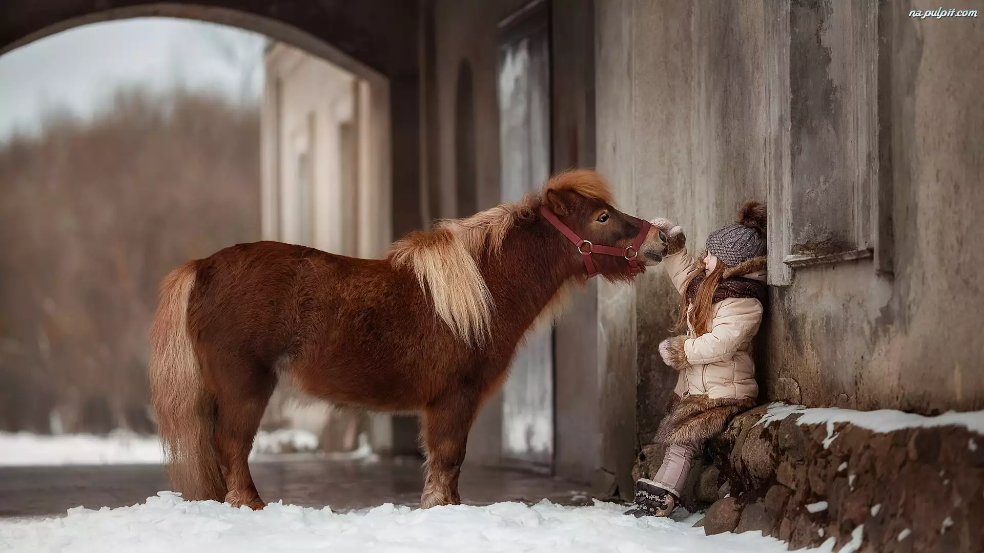 Kuc, Dom, Dziewczynka, Dziecko, Śnieg