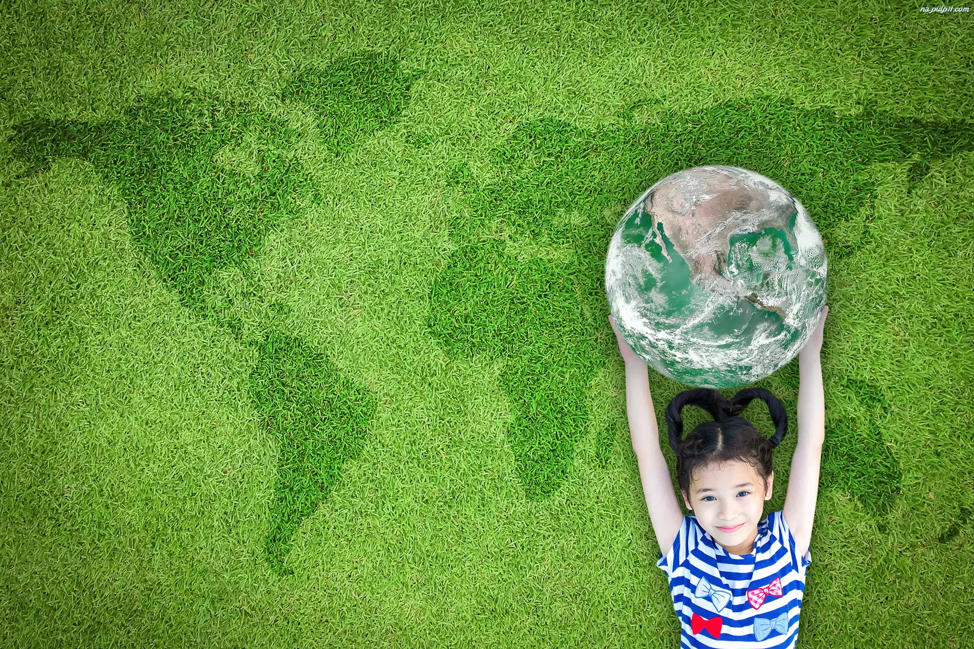 Kontynenty, Planeta Ziemia, Trawa, Zielona, Dziewczynka