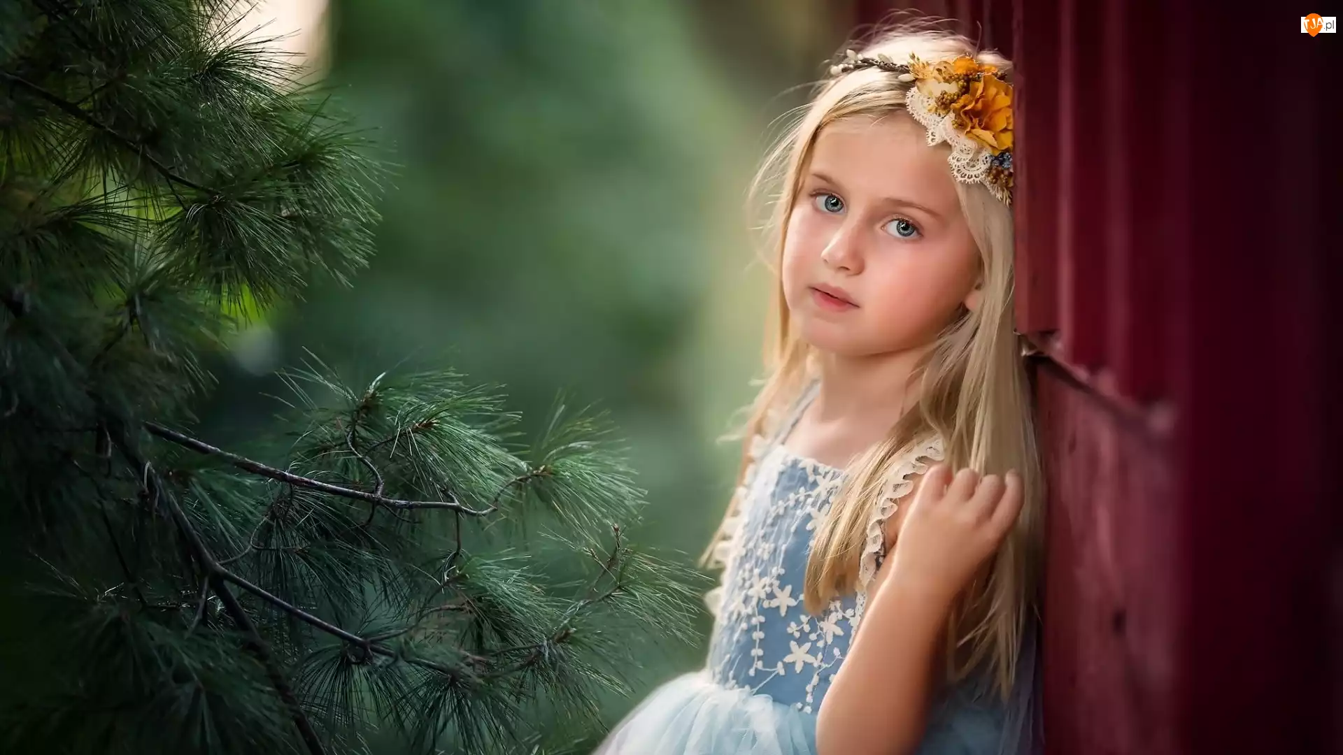 Dziecko, Modrzew, Dziewczynka, Wianuszek