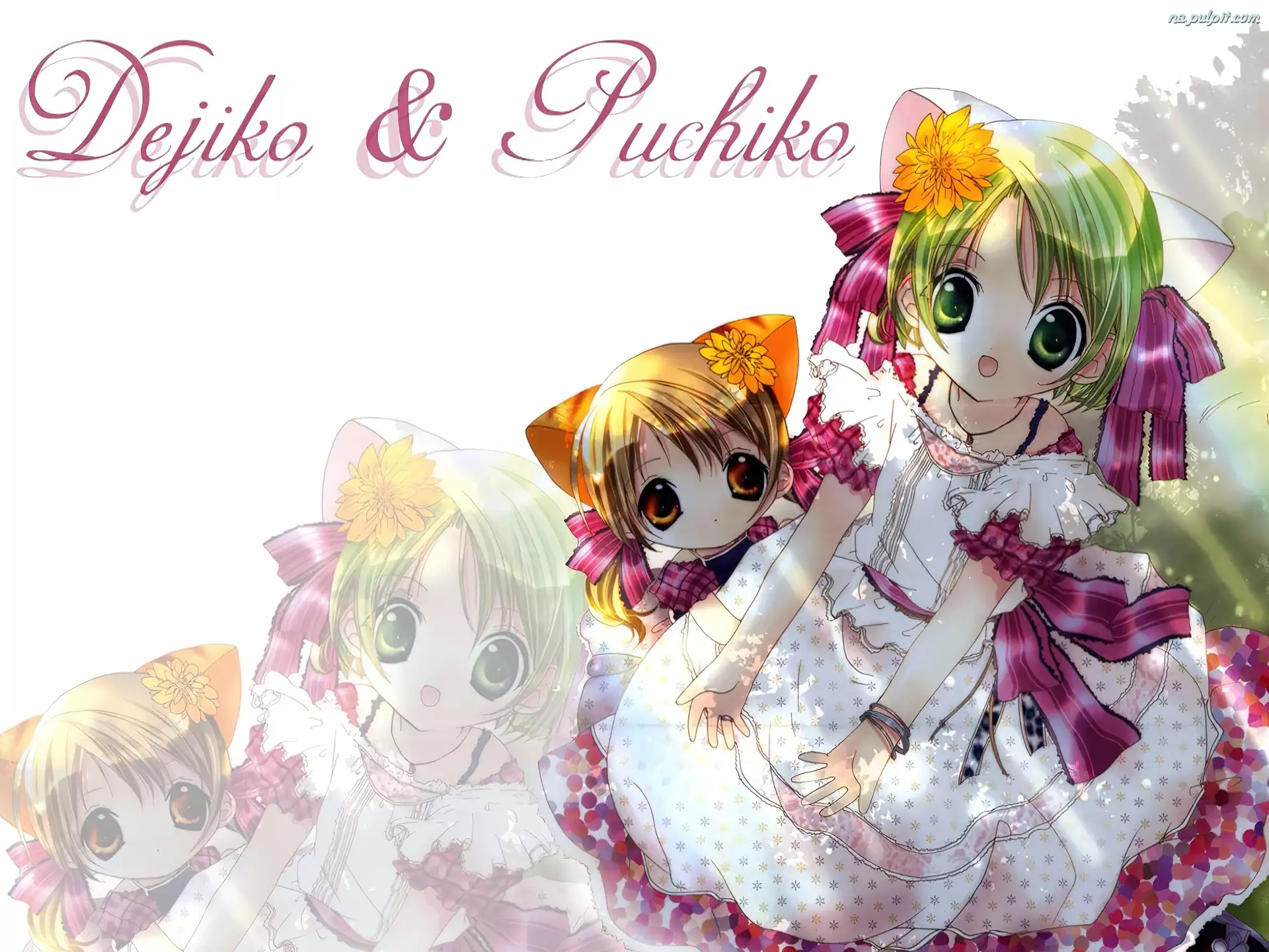 dziewczynki, Digi Charat, kwiaty, napis, suknia