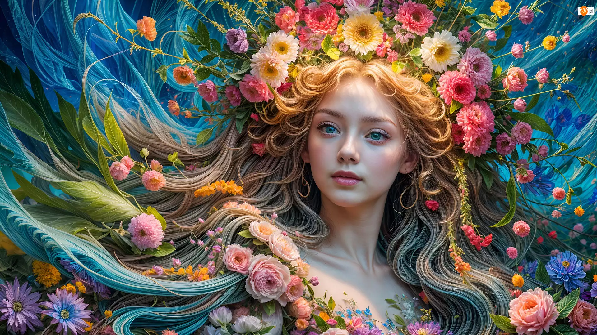 Grafika, Dziewczyna, Kwiaty, Róże