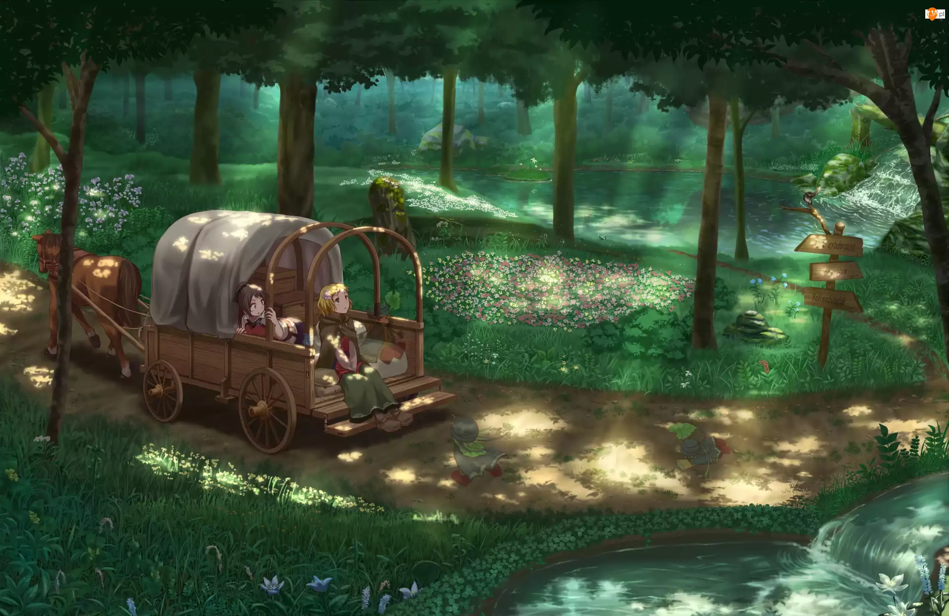 Dziewczyny, Anime, Koń, Wóz