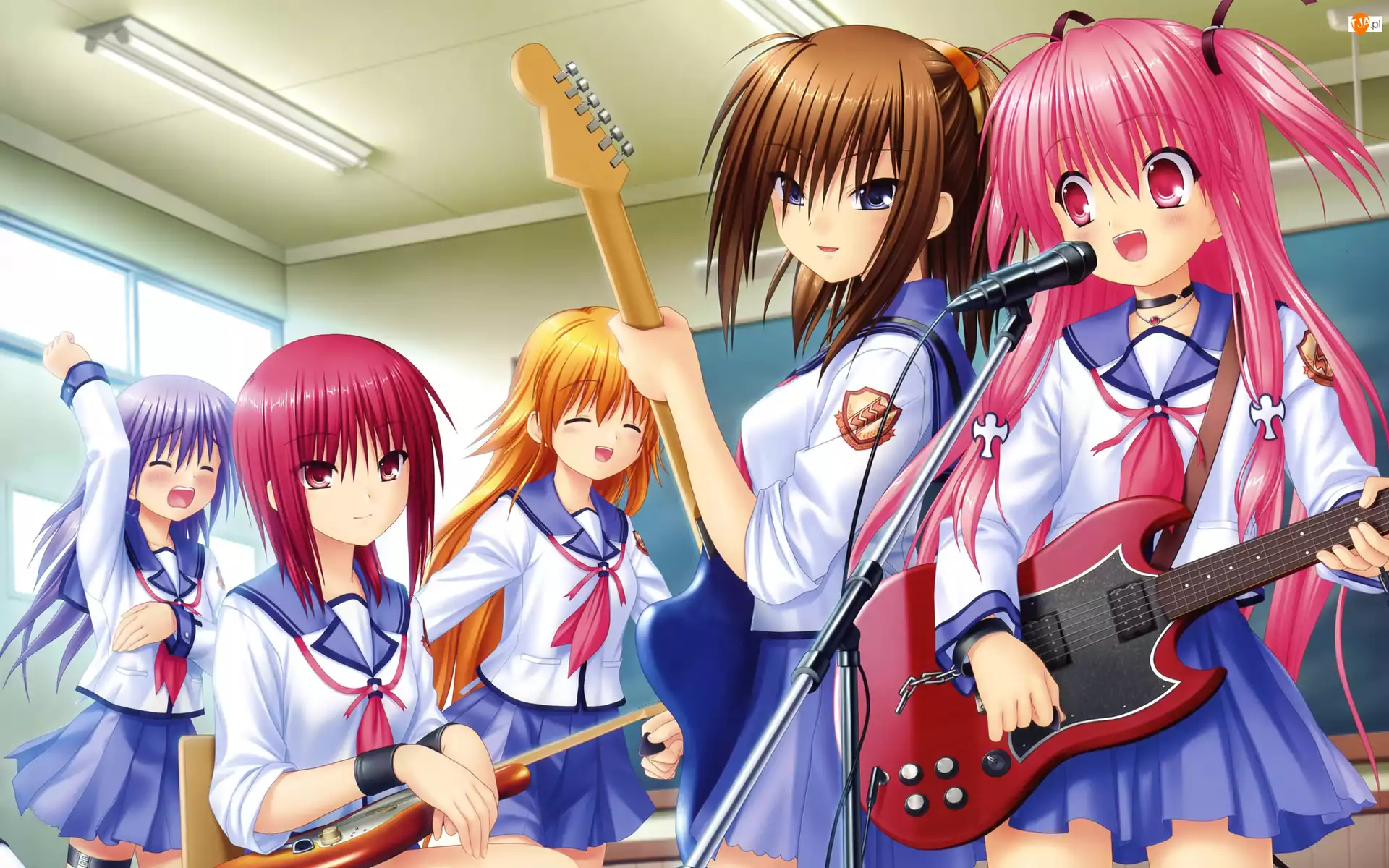 Mikrofon, Angel Beats, Gitary, Zespół, Muzyka, Szkoła, Klasa, Anime, Dziewczyny