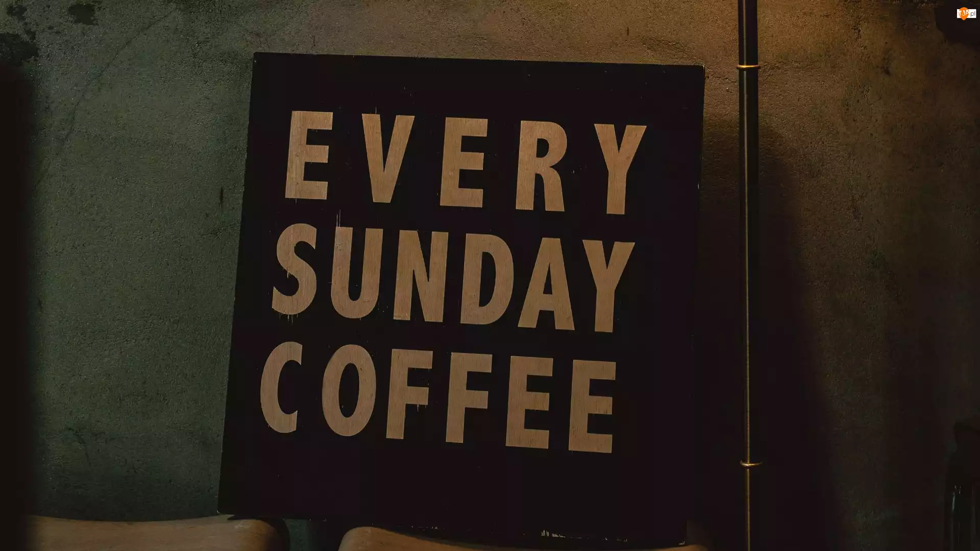 Every Sunday Coffee, Napis, Tabliczka, Tekst