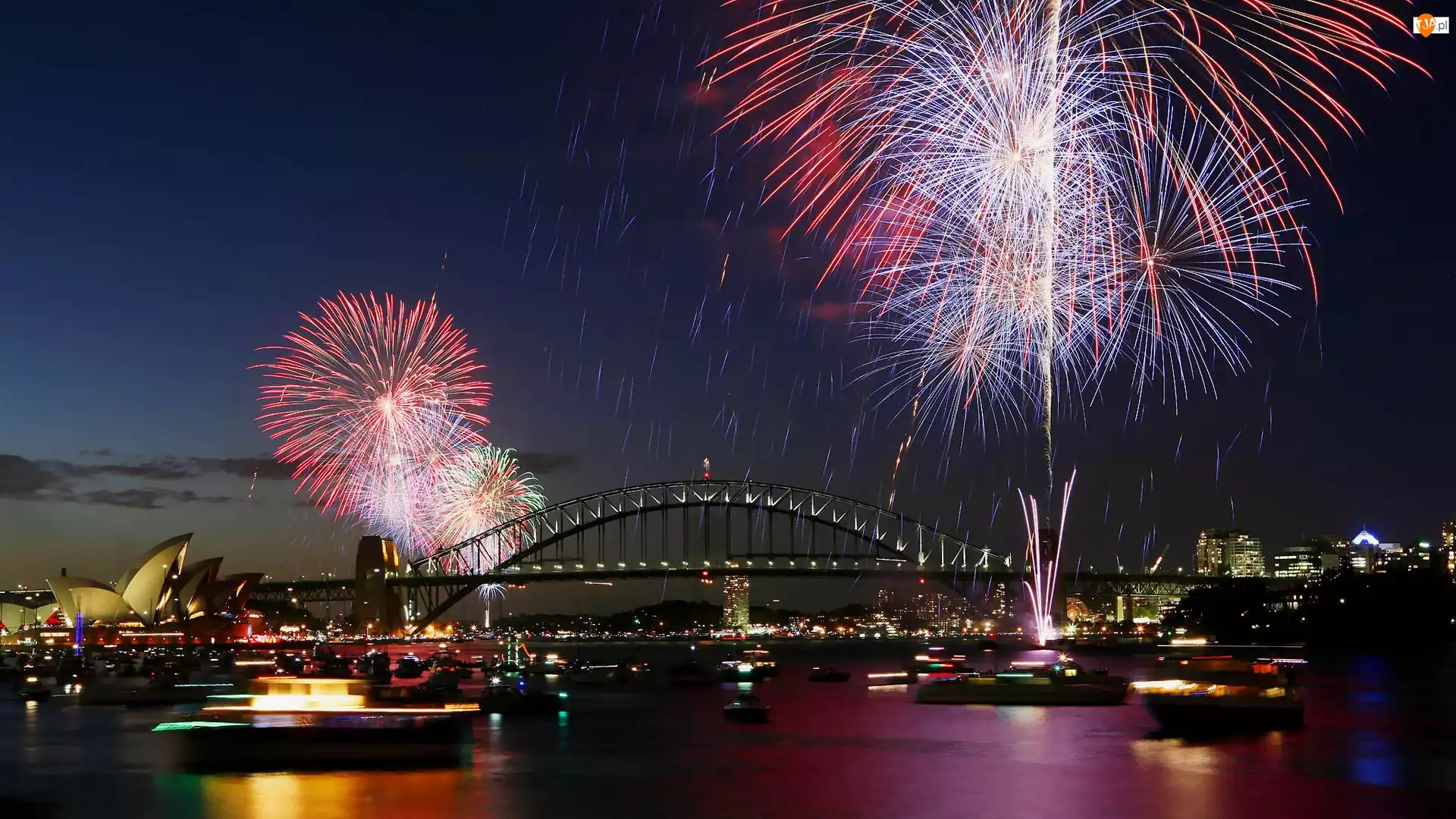 Fajerwerki, Sydney, Nowy, Most, Rok