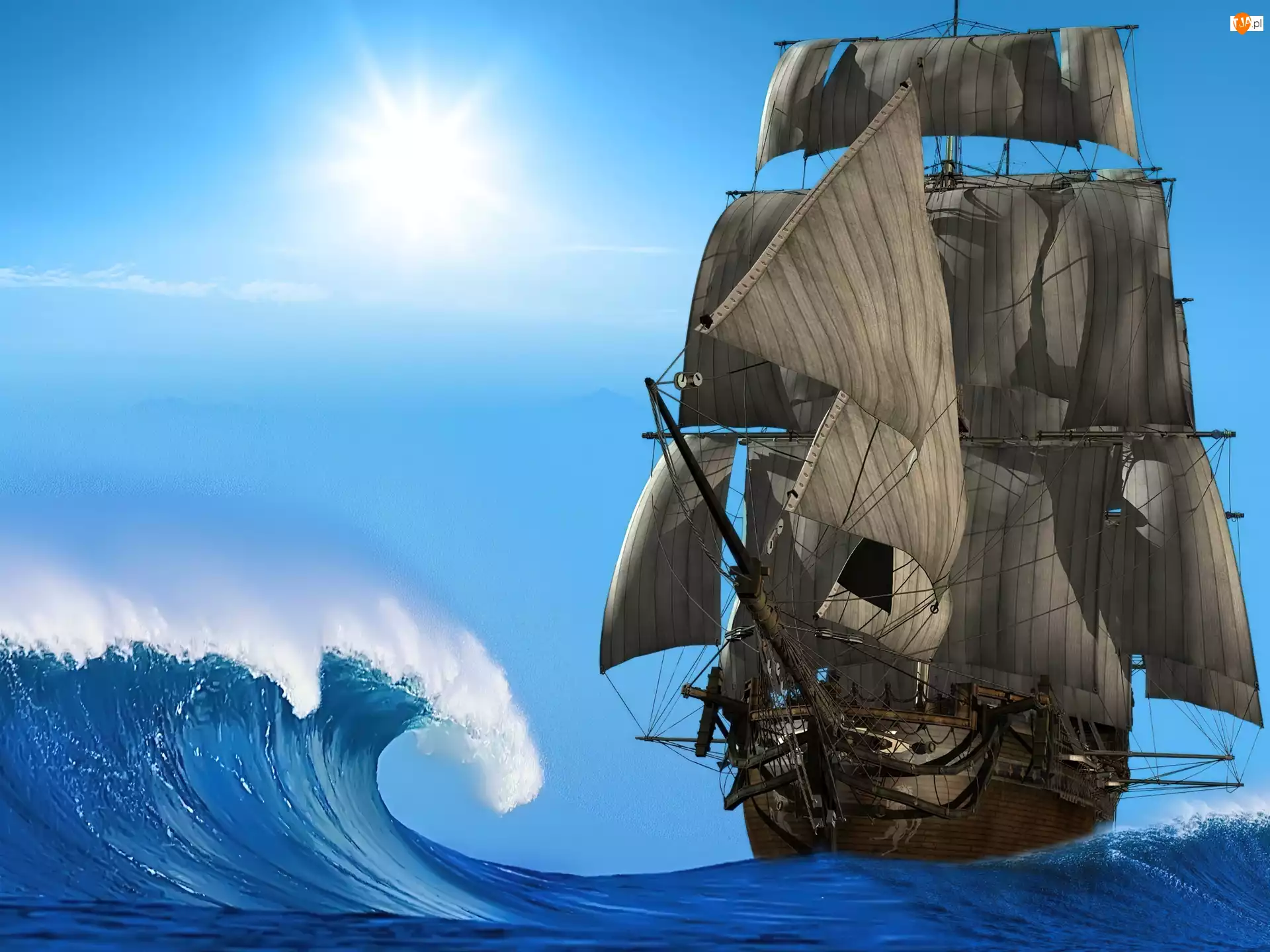 Fala, Żaglowiec, Słońce
