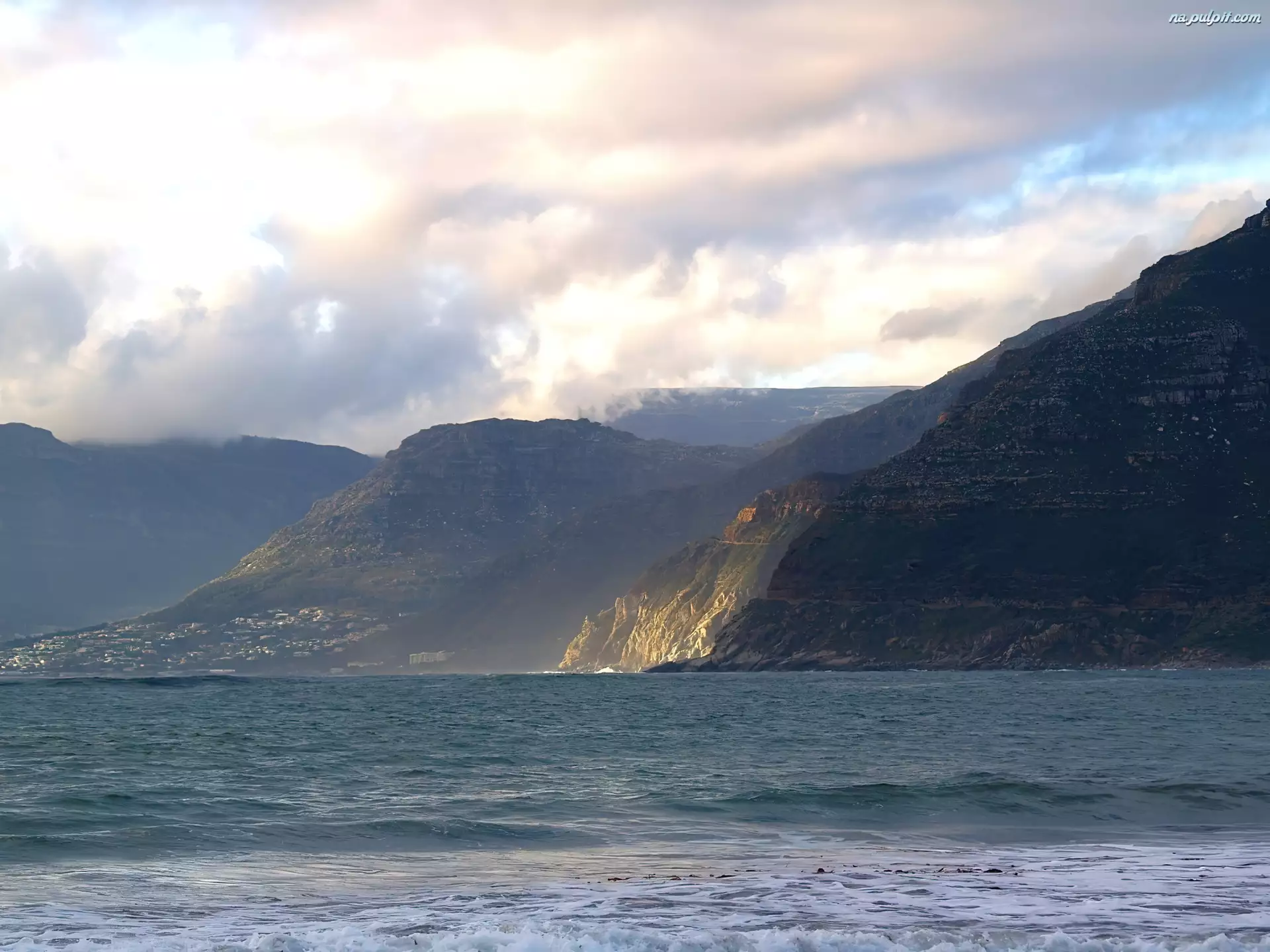Fale, Góry, Niebo, Morze, Chmura