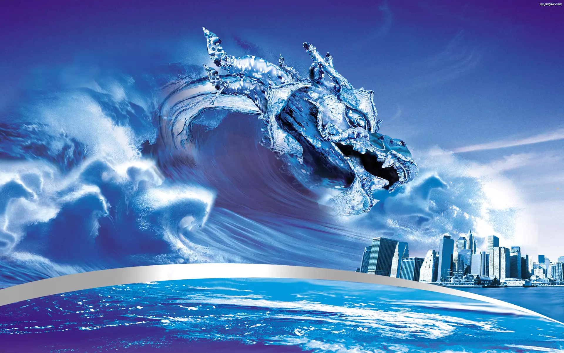 Fale, Smok, Morze, Woda, Miasto