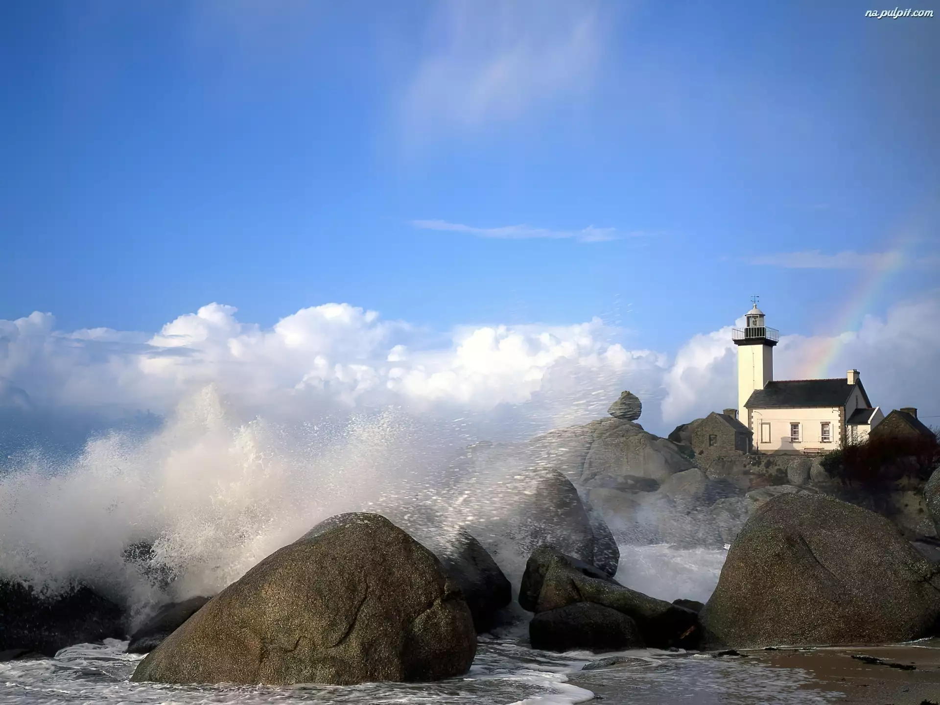 Tęcza, Fale, Kamienie, Latarnia morska