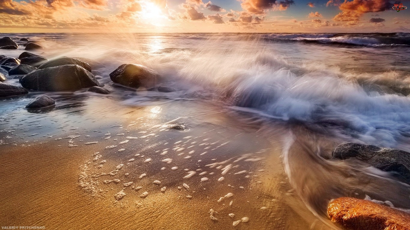 Fale, Zachód, Morze, Słońca, Plaża