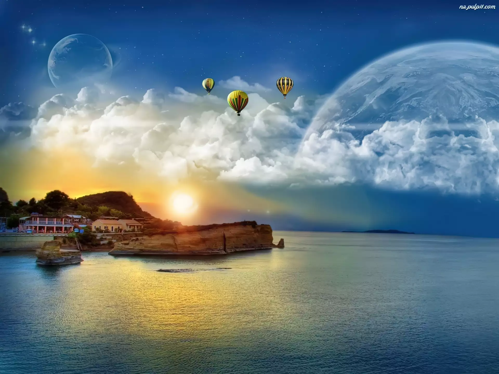 Fantasy, Balony, Księżyc, Planety