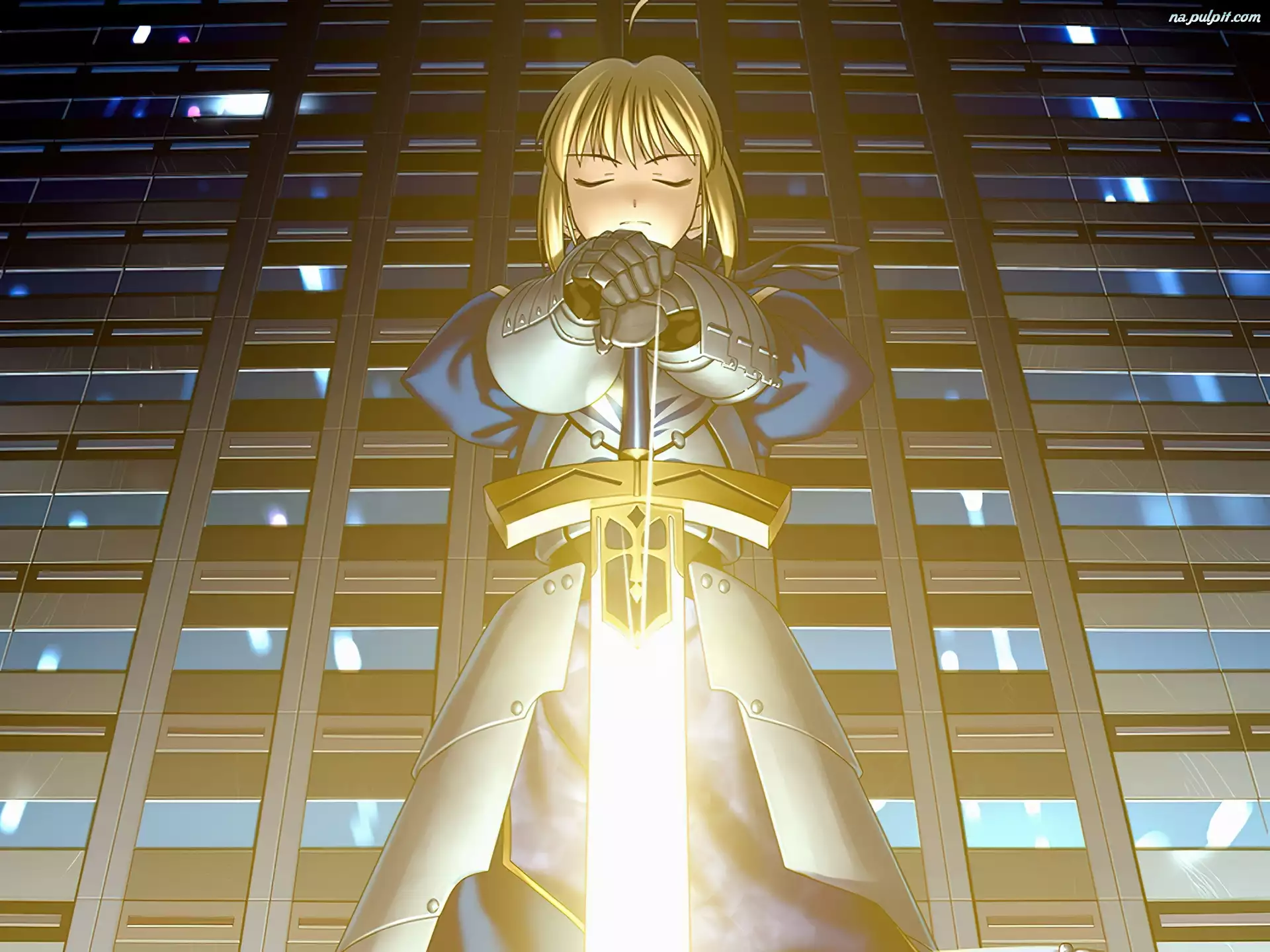 Fate Stay Night, miecz, biurowiec, postać